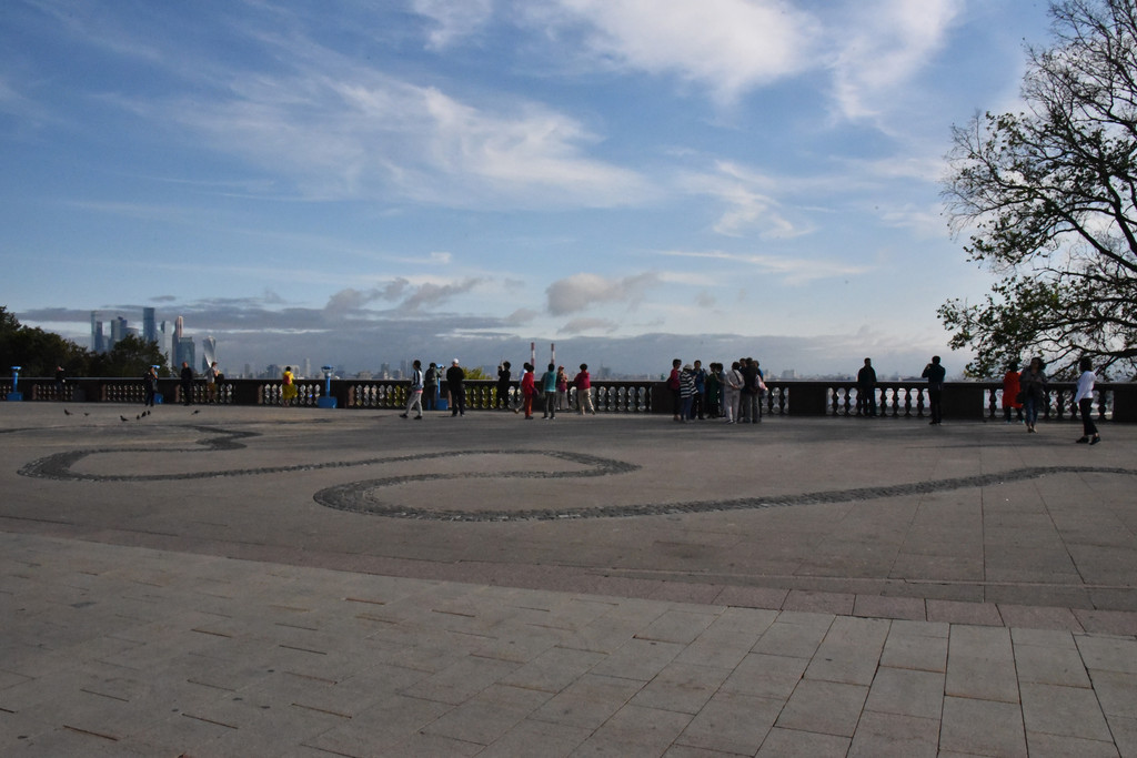 沿着一条林间小路走到列宁山的观景平台,这里可以远眺城市景观,对面那个半圆形的建筑就是今年举办足球世界杯的体育馆,左侧有一组建筑看起来很现代,这也是他们的金融和科技中心,其他建筑对于我们这些初来乍到的游客来说实在看不出啥所以然来,这里停留的时间长实在是因为我们出机场太早了。