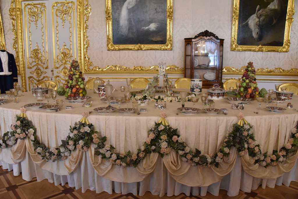 有餐桌上陈设的都是十八世纪特制餐具的军官餐厅,