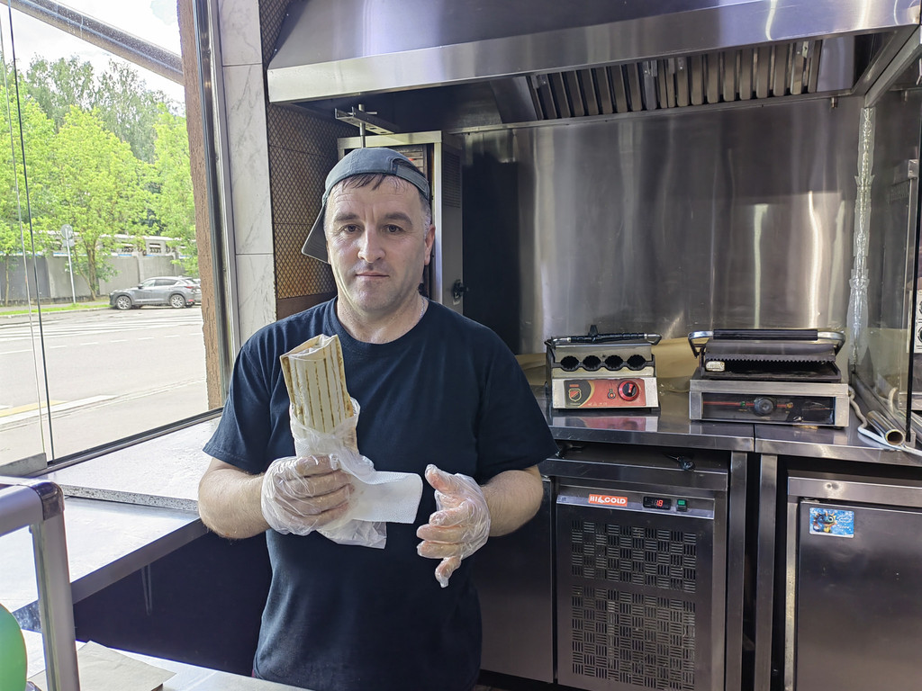 俄罗斯最实惠的食物就是卷饼,各种面包蛋糕也不贵,整体消费水平和北京上海郊区差不多。这种卷饼店随处可见。