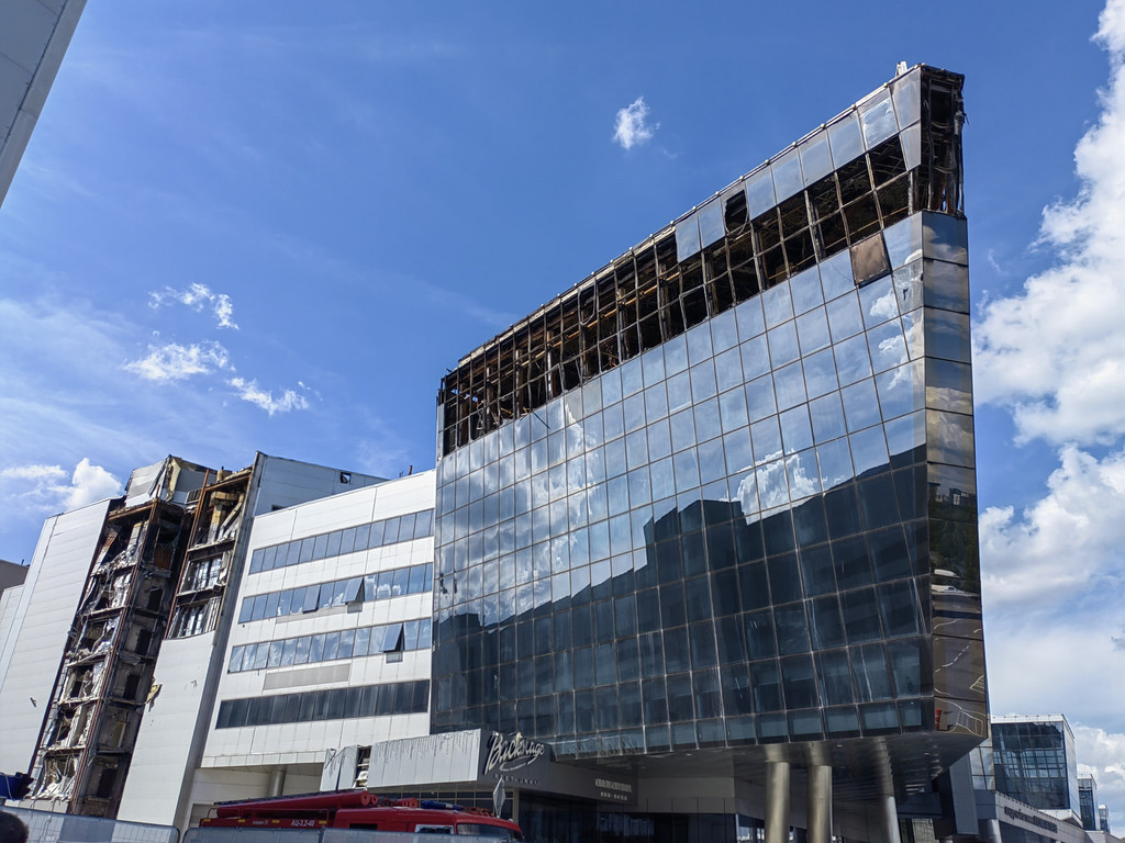 这次展会就是在四月份发生音乐厅枪击爆炸袭击案边上,这是音乐厅残骸,希望暴力恐怖案件不要再发生。展馆门口都有武警持枪巡查。