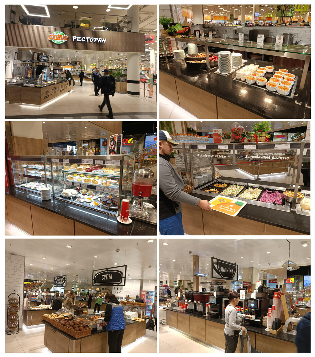 到达萨拉里沃(Саларьево),没吃早饭的我感到有些饿。朋友曾告诉我,车站上面有个大商场,可以到这里俄式自助餐厅吃早饭。找到商场二楼俄式自助餐厅,取餐盘、选餐、现金支付,很顺利(图13)。