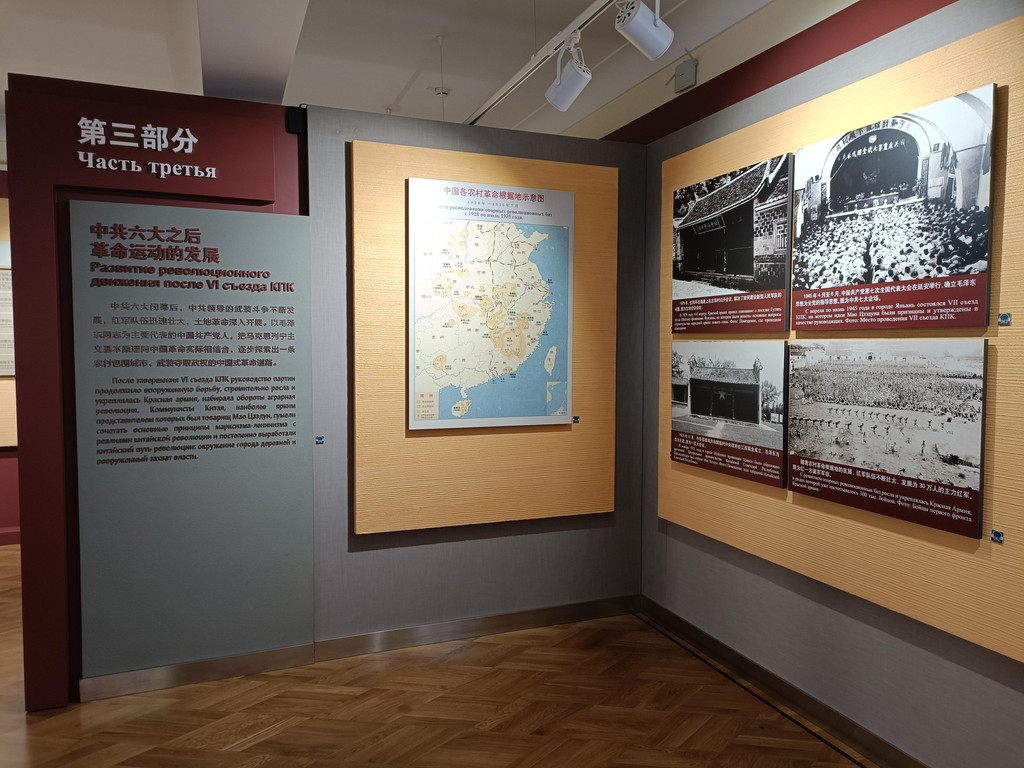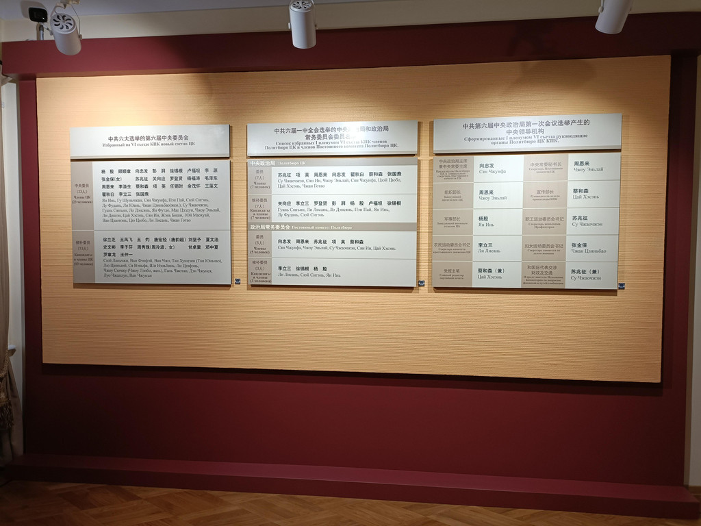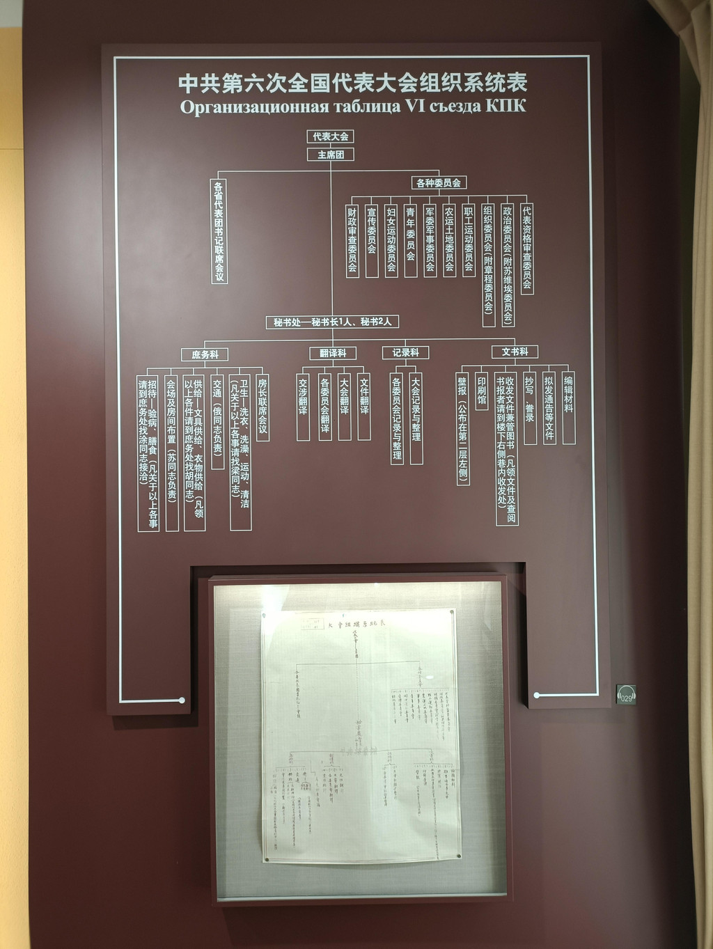 中共六大展陈分三部分,第一部分、中共六大召开前的形势(图27—图31);第二部分、中共六大的筹备与召开(图32—图39);第三部分、中共六大之后革命运动的发展(图40—图43)。