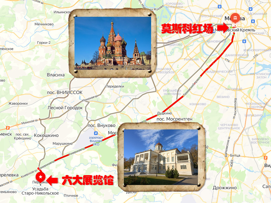 中共六大会址目前所在行政区划位置是俄罗斯首都莫斯科市圣三一区五一乡五一村,在莫斯科市西南,距莫斯科市中心约40公里(图4)。