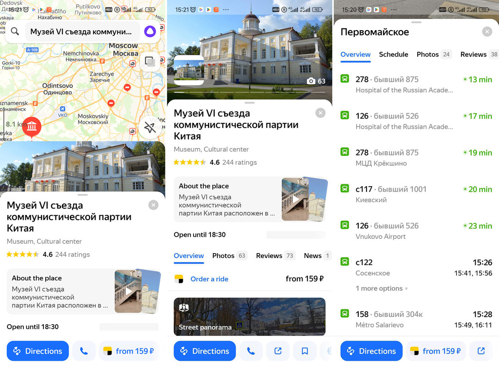 首先,在手机上下载yandex maps ,查找到中共六大会址具体位置,通过yandex maps 了解到中共六大会址周边公交信息和公交车实时到站信息,为我此次中共六大会址之行提供了便捷条件(图5)。