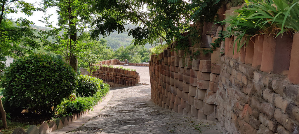 静谧的街巷里,目及之处,罐罐垒墙,瓷片铺路,陶罐与瓷片的展示,成为古镇一道迷人的风景。