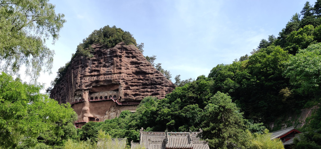 麦积山石窟,因外型像一堆“麦垛”而得名。坐落于“陇上江南”天水。石窟始建于384-417年,距今已有1600余年。据介绍,存有221座洞窟、10632身泥塑石雕、1300余平方米壁画。被誉为东方雕塑艺术陈列馆。