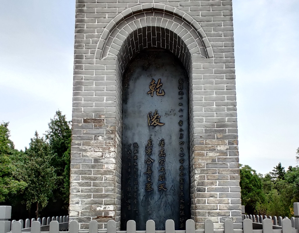 乾陵建成于唐光宅元年(684年),神龙二年(706年)加盖,采用"因山为陵"的建造方式,陵区仿京师长安城建制。除主墓外,乾陵还有十七个小型陪葬墓,葬有其他皇室成员与功臣。陵园规模宏大,总面积接近240万平方米。位于陕西省咸阳市乾县县城北部6千米的梁山上。