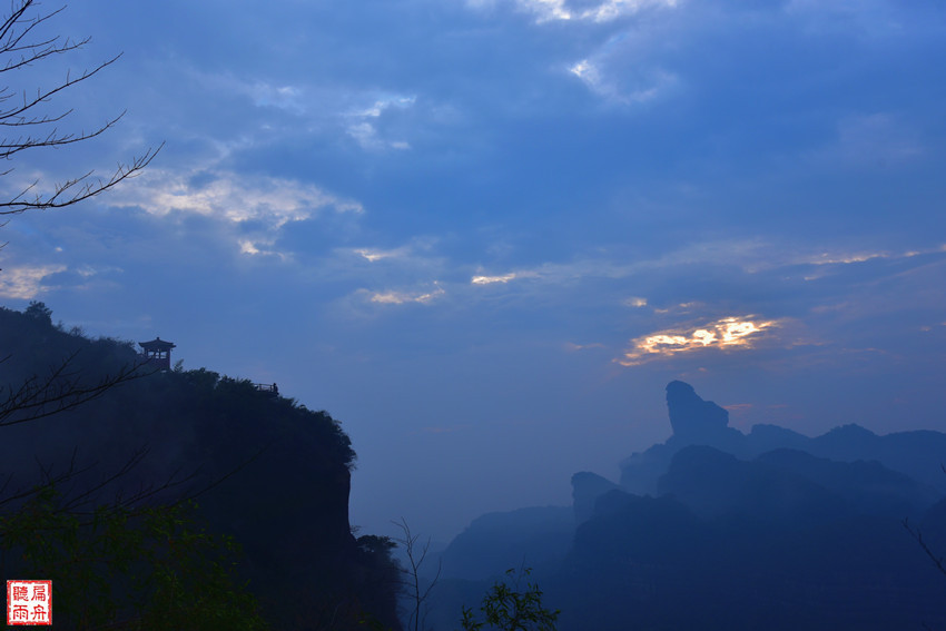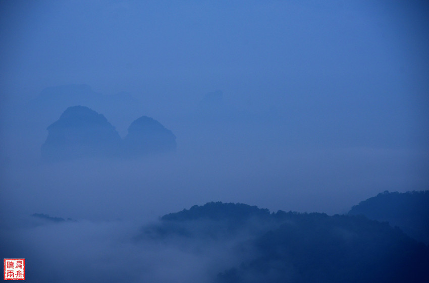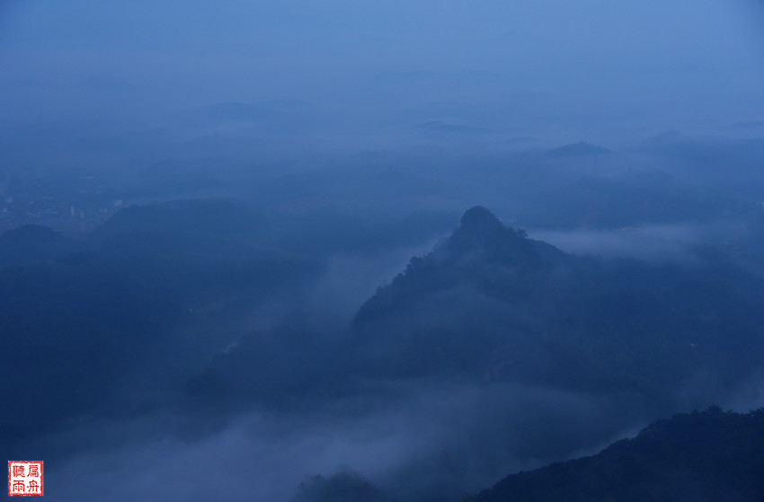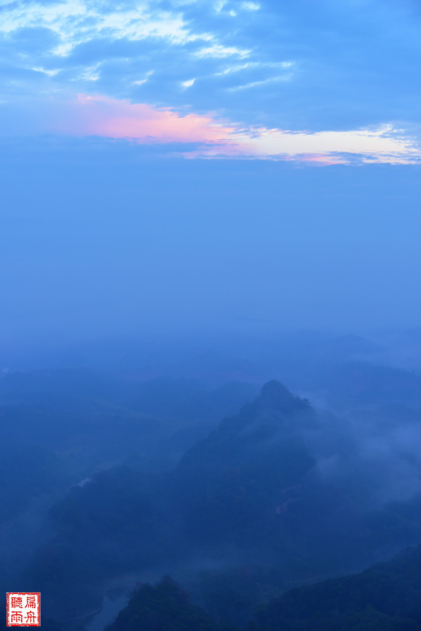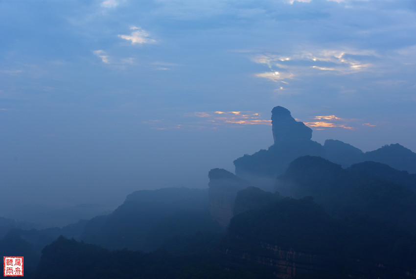 终于走到了观日亭,最美的日出胜景依然没有出现。苍茫朦胧的云海雾帐之中,丹霞山有着另一种的美!