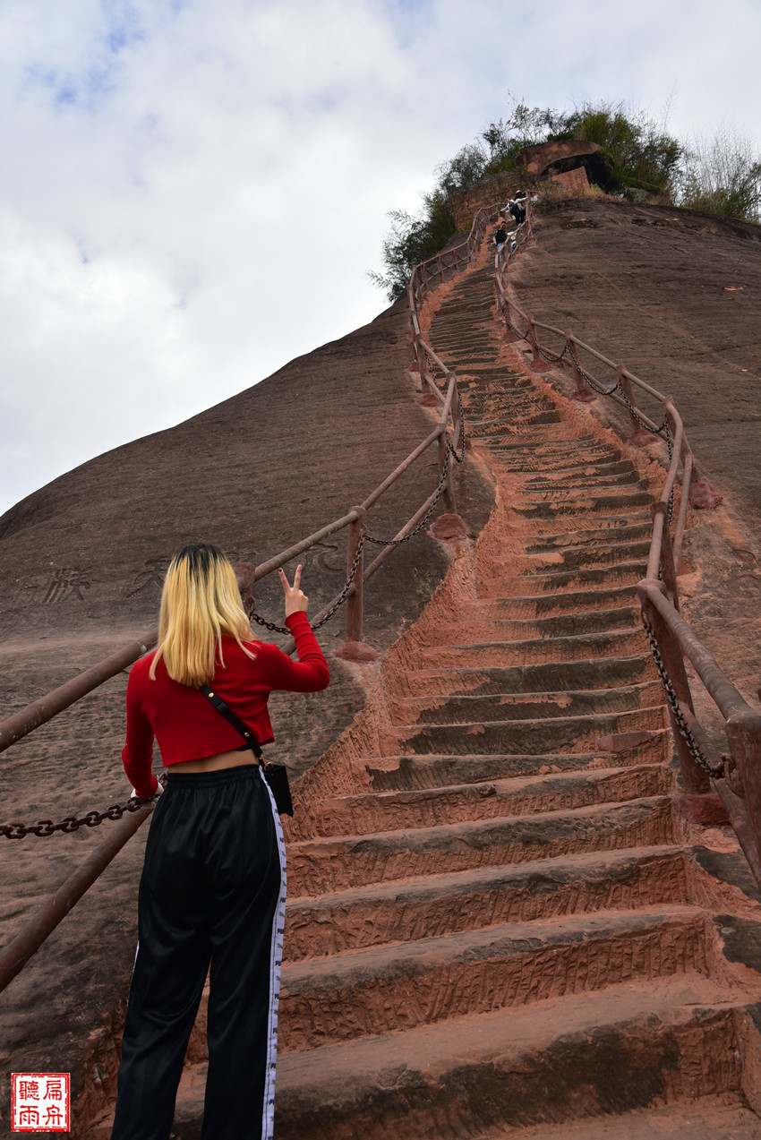 如果恐高,就不要再回头咯。山下有提示:高血压、心脏病、恐高症者请勿攀爬。