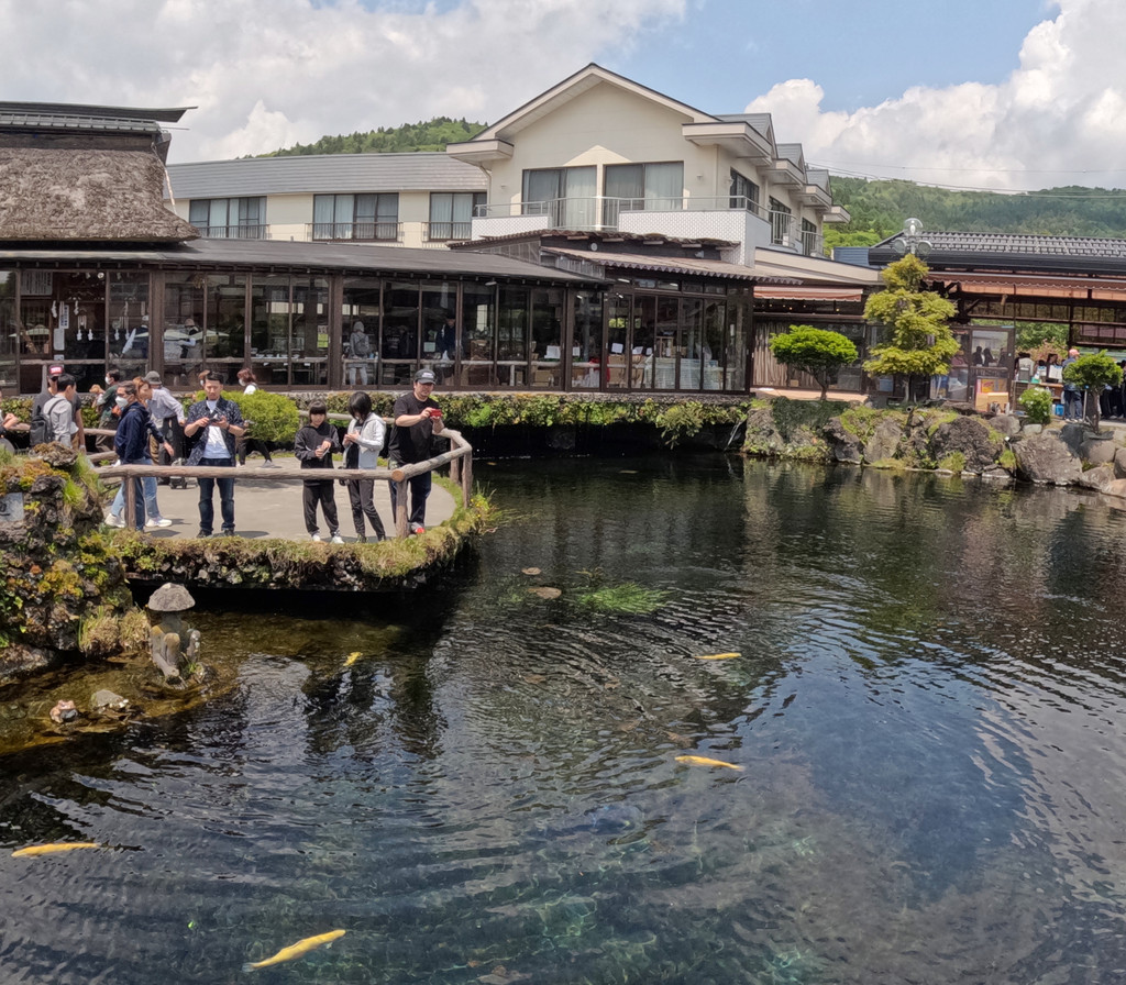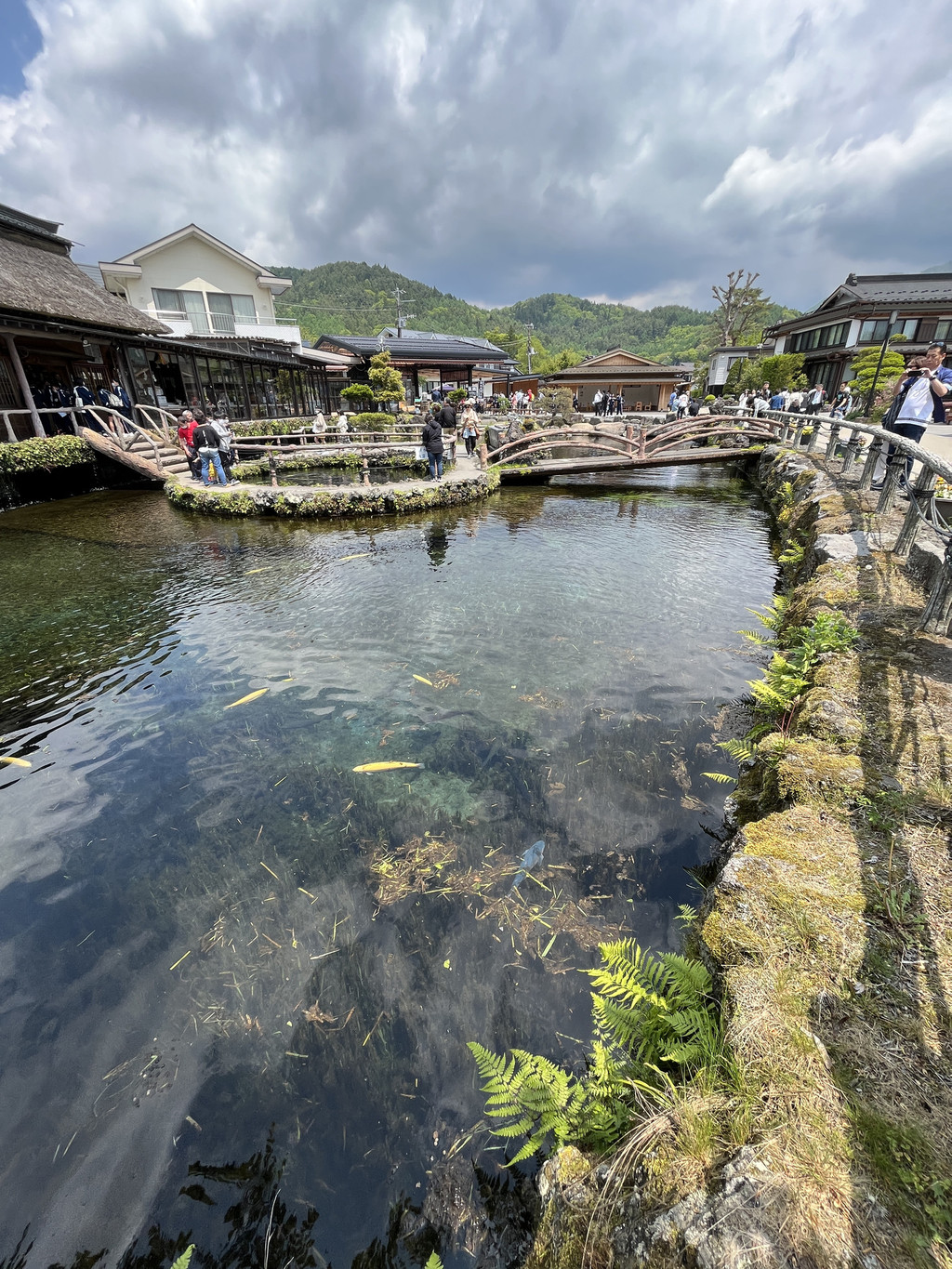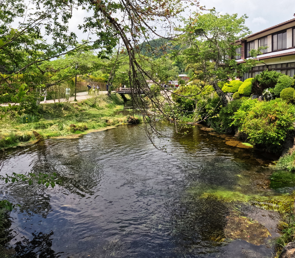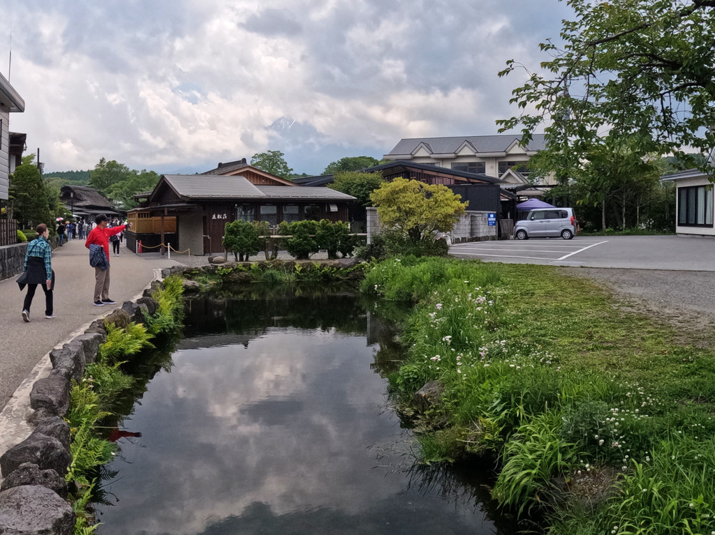 早上乘酒店Shuttle去河口湖站, 买2天的巴士旅游票,¥1500/人,先去Oshino Hakkai忍野八海。 忍野八海位于山梨县东南部,富士山北麓,四面环山的高原盆地。“忍野八海”是从富士山的地下水喷射出来的八个泉池,被认定为世界遗产。有菖蒲池、镜池、淘池、涌池、铫池、御釜池,底拔池、出口池。每个池都有一块石碑,石碑上面刻有池名称、对应的龙王名字、净化仪式和一首诗。