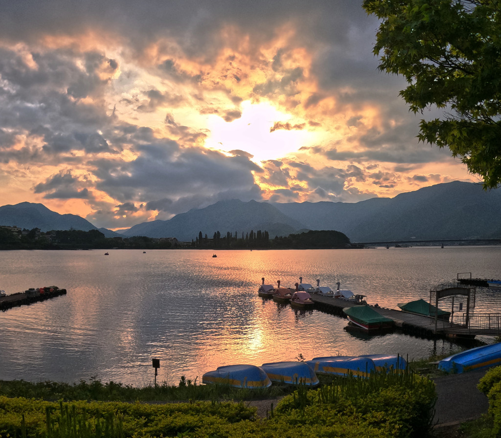 下午回到河口湖站,乘酒店Shuttle去酒店Fuji View Hotel (富士ビュ-ホテル) 。 傍晚到酒店附近的河口湖一走。河口湖为富士山子湖之一,是唯一一个有岛屿的湖,宁静的湖面,黄昏的富士山景,格外优美。