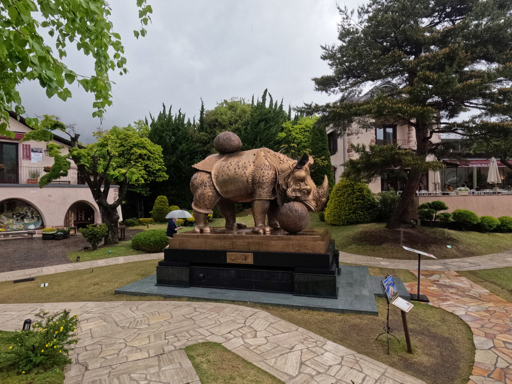 河口湖沿线有许多展览馆、美術館,回程路上去了河口湖音楽 と森の美術館Kawaguchiko Music Forest Museum,门票¥1800/人。庭院不大但很美,庭院建筑亦很有特色,有Concert Hall, Orange Hall, Museum Shop, Acorn House,世界著名艺术家Salvador Dali 设计的Rhinoceros Dressed in Lace。