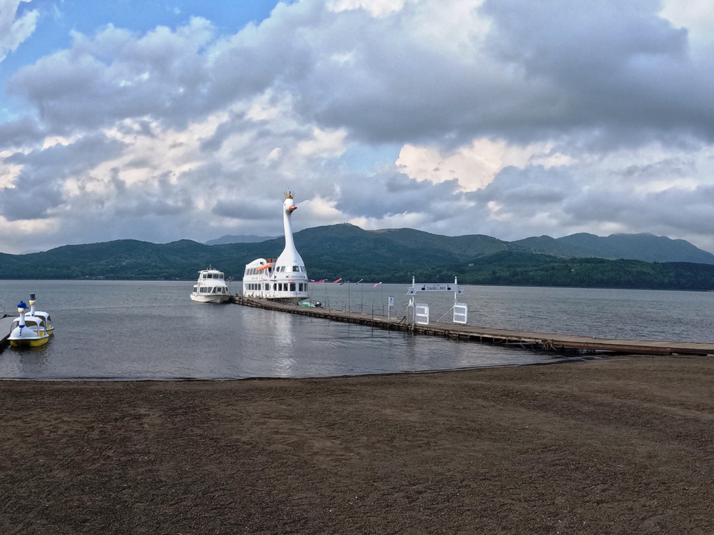下午从花の都公園再到山中湖一游,游人很少,游船都不开。