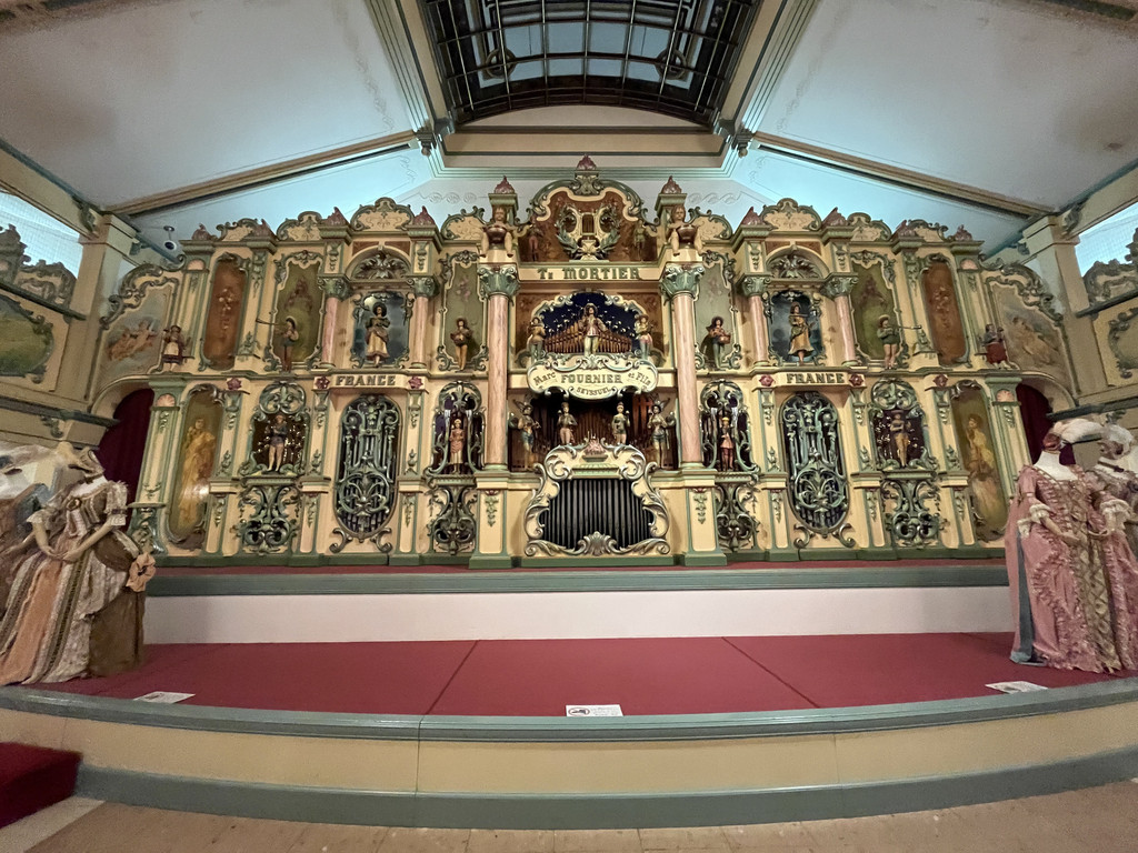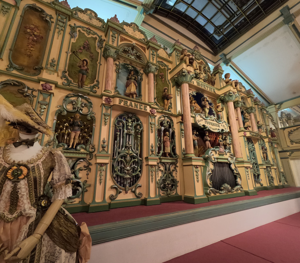 可惜下雨,但美術館内收藏的八音盒之类的乐器丰富多彩,许多都是几百年前欧洲美国的乐器,室内演奏表演也令人惊艳,从计划安装在泰坦尼克号上的自动演奏乐器,到拥有 100 年历史音色迷人的大型八音盒,还有世界上最大的舞蹈管风琴。舞风琴Belgium Motier circa 1920,由一位具有代表性的当代艺术家修复和制作,使其华丽的外观和丰富的音乐重现生机。约有800根产生管弦乐器声音的管子和数种打击乐器结合在一起,其性能可与数十人组成的管弦乐队相媲美。由于它曾经被安装在舞厅中,所以被称为舞风琴。管风琴厅建筑是专门为管风琴设计的。宽13米,高5米,两侧墙上贴着的43个人偶,可随着音乐动起来。