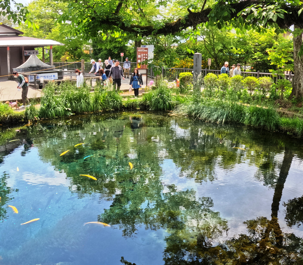 池深澈水清甜,大家都在现场饮用,我们也装满矿泉瓶。如出口池的泉水被称为“净水”,是想登上富士山的修行者用来净化自己身上的杂质的。并流传着背着这水就能安然登山的古老传说,并一直深信不疑。故又称精进池。