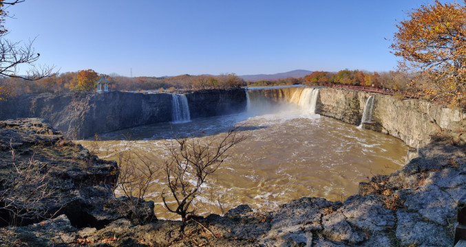 二、大峡谷景区(票价60元),距离瀑布景区很近,走路过去就行,大约15分钟就到,该景区原来是朝鲜族村落,非常美,也有个非常壮观的瀑布,让然流连忘返。