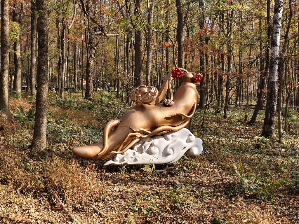 蛟河红叶谷位于吉林省蛟河市拉法山国家森林公园内,是一个以秋季红叶景观闻名遐迩的天然山谷。曾被《中国国家地理》杂志评为“中国十大秋色”之一,以其规模宏大、色彩绚丽的红叶林而著称。山谷全长50余公里,每年9月下旬至10月中旬,漫山遍野的枫树、槭树、桦树等交织成红、黄、绿相间的“油画世界”,尤其以“红叶走廊”最为壮观。这是关于红叶谷我搜集到的一些资料,不过实际到地方可能因为今年是闰六月的原因,红叶都没红,很失望。