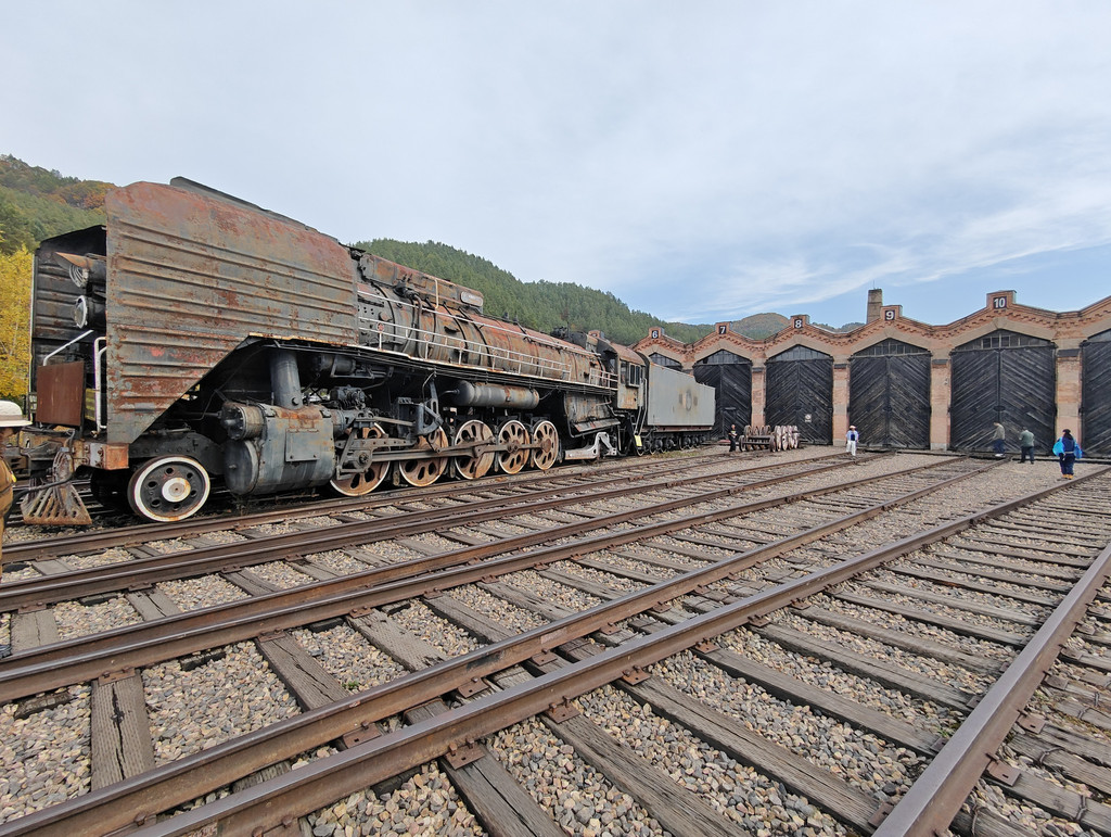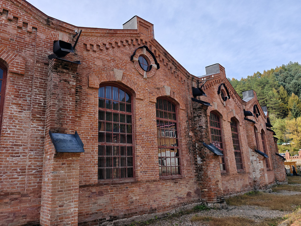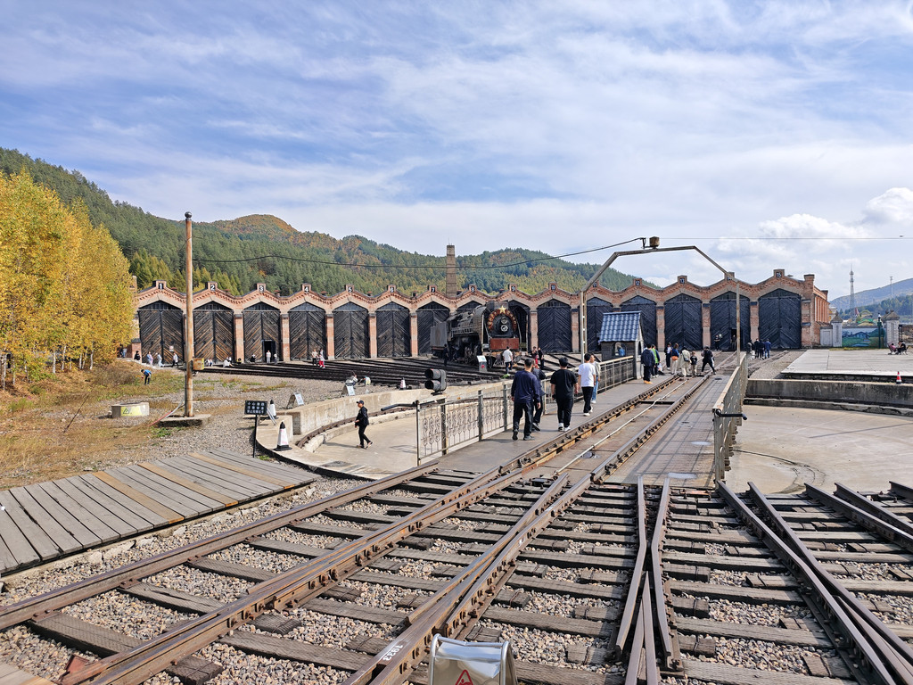 横道河子铁路机车库建于1903年,造型如一把打开的折扇,是中东铁路东线上规模最大、保存最完好的机车库。15个扇形排列的库房和转盘道,共同构成了一个完整的机车检修、转停体系。