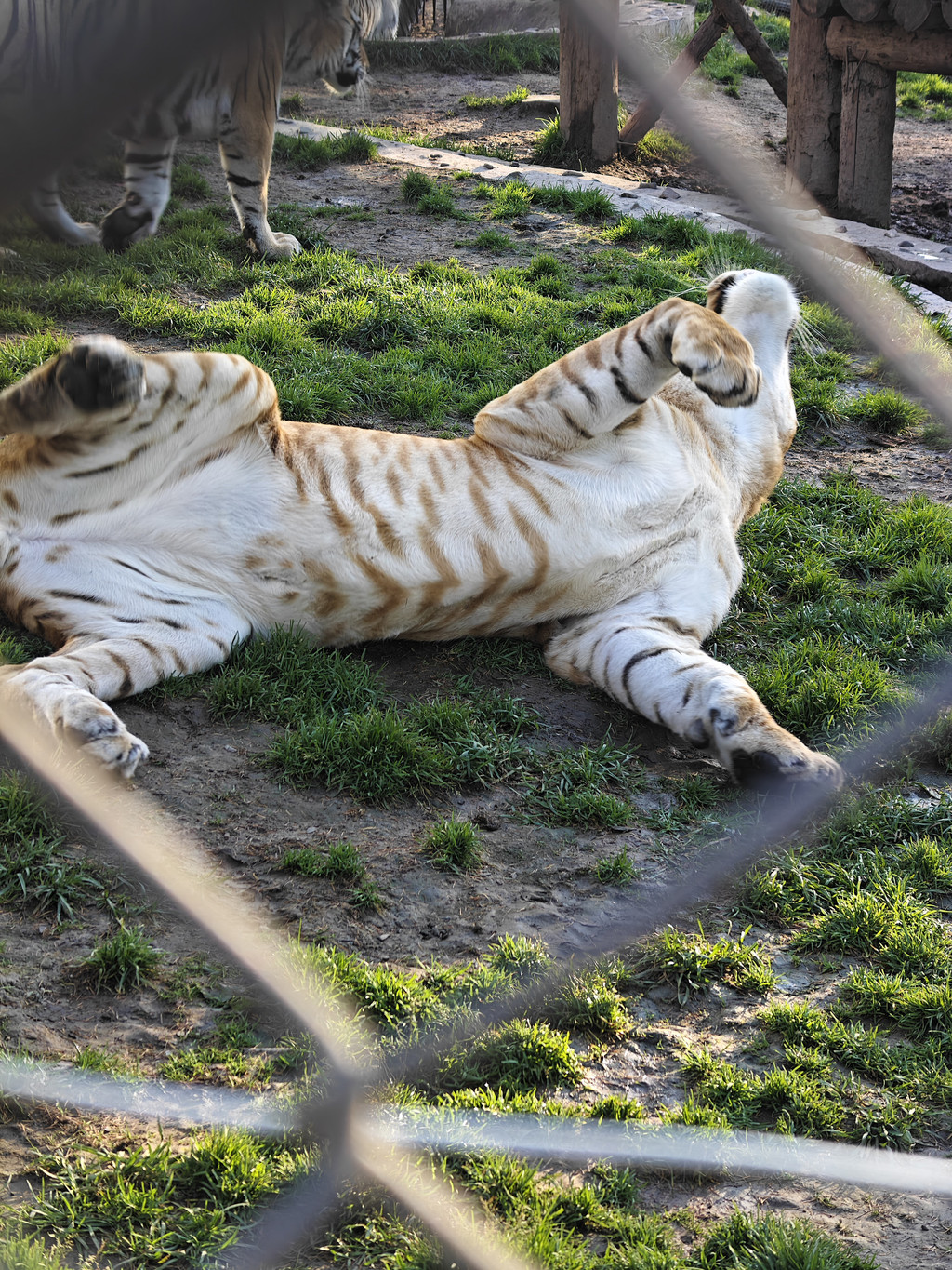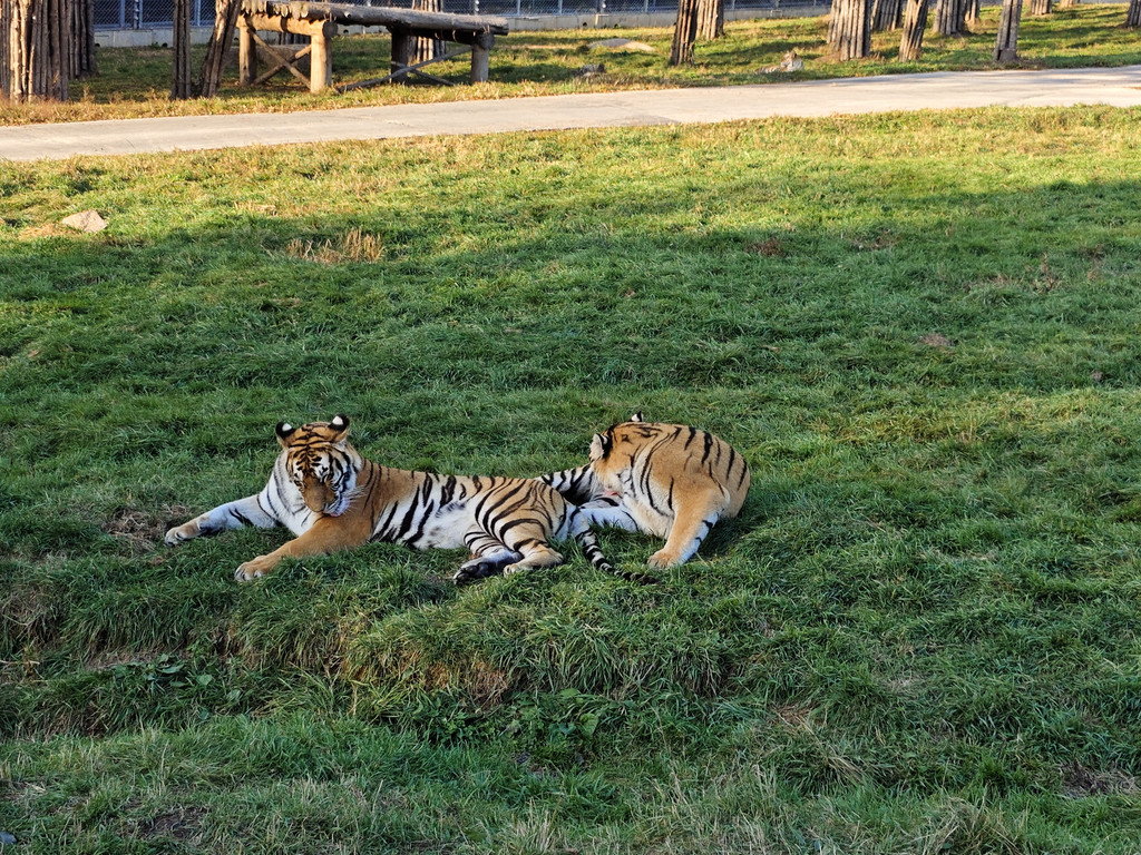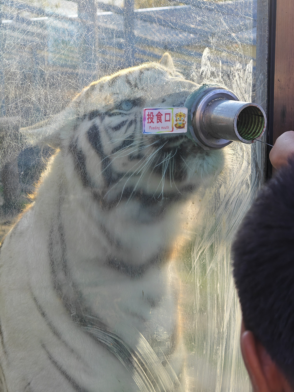 吃饱喝足出发东北虎林园,本来觉得横道河子镇的虎园比哈尔滨的虎园要小一些,老虎不会很多,但大大出乎我的意料,老虎还是很多,进入虎园一定要做观光车看下散养的老虎,虽然一圈时间不长,但总体来说票价还是值的,观光车票价10元,车上有带玻璃和栅栏的,还有没有玻璃只有栅栏的两种,选择没有玻璃的看老虎更真切,推荐。在观光车上讲解人员会推荐大家在圈养区购买肉条进行喂虎,大家可以根据实际情况购买,每条肉10元钱,买几条都可以,有肉喂虎可以让老虎在喂肉区站立起来很好的观赏老虎。虎园参观时间一个半小时,票价45元,价格适中。