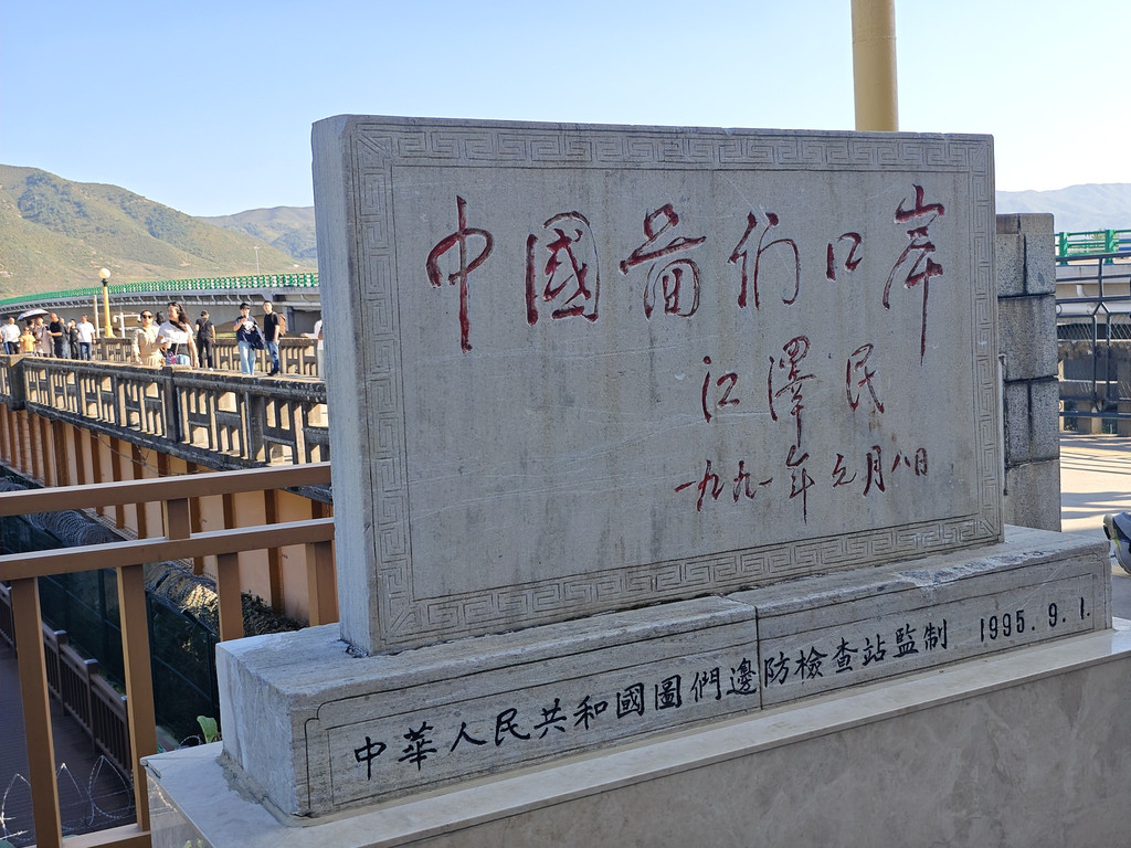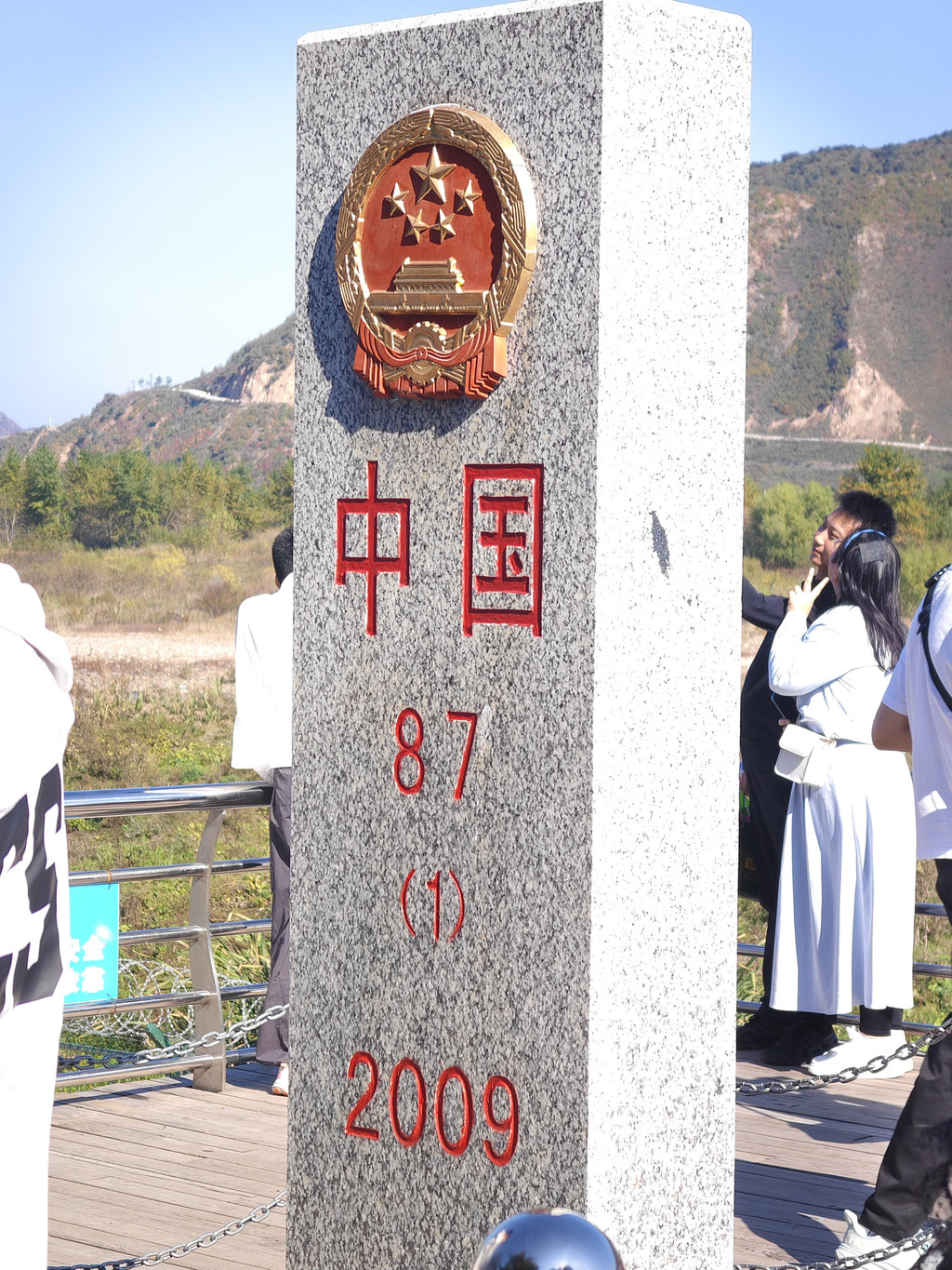 出发去图们口岸,图们口岸有网红的87和86号界碑,大家可以打卡,有的店可以买东西然后使用他们的望远镜观察朝鲜,当然也有免费的,需要排队。在国门上面也有扫码自主的望远镜,10元一次5分钟,能看到对岸的哨所及官兵。