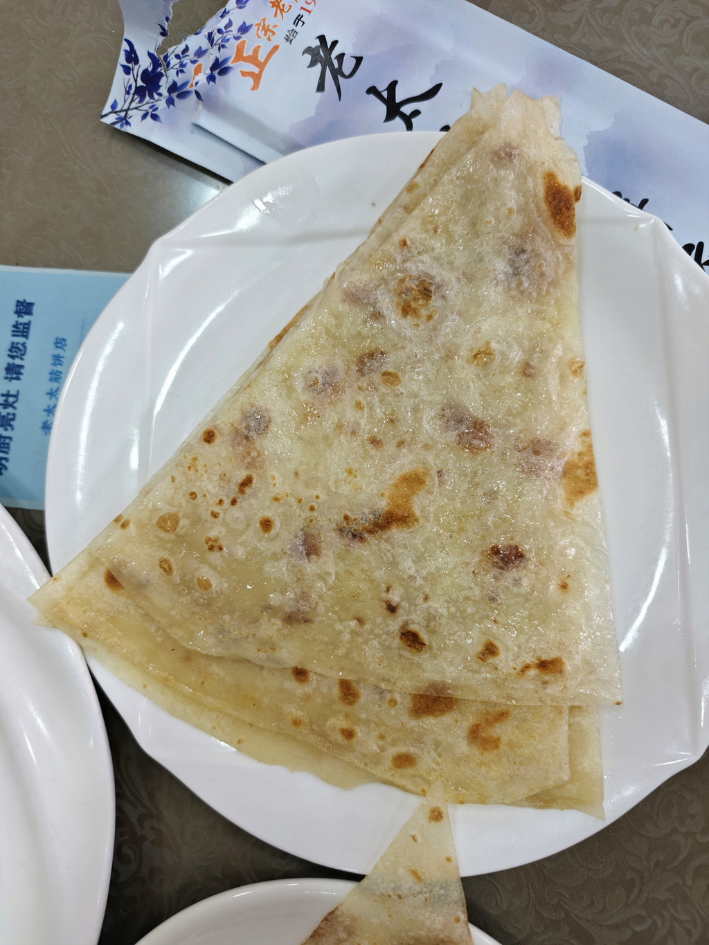 午饭我们也选在了横道河子网红筋饼店,老太太筋饼店,我们去的时候人还是很多,和其他游客拼桌就餐,整体价位比较实惠,我们三口人总共花费为123元,吃的饱饱的。