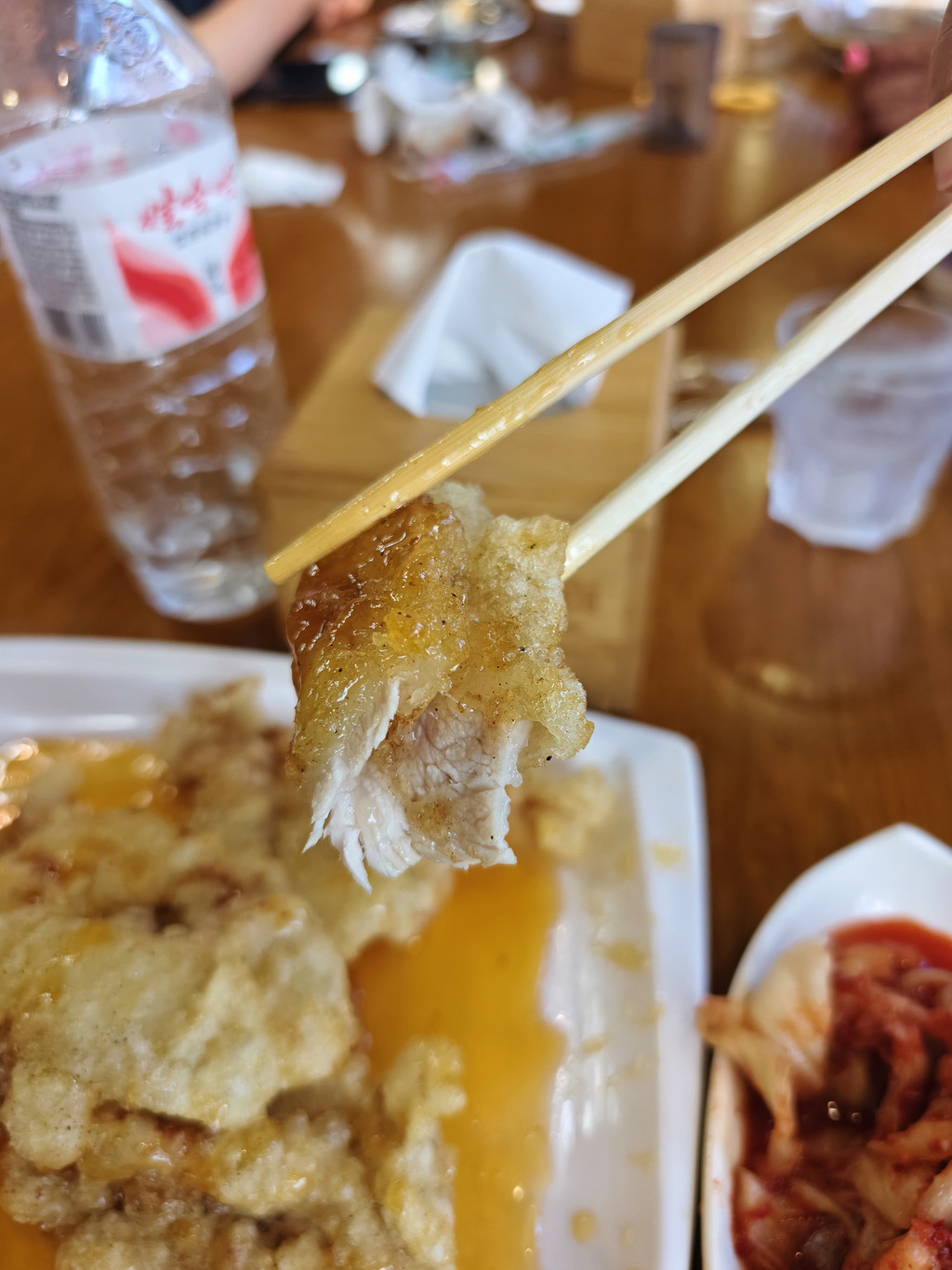 可能大家觉得怎么没谈到午饭什么的,我们为了保证游玩的质量,在路上买了一个烤制的镜泊湖赤尾鱼,然后其他时间大部分都在吃自带的面包和零食。路上大家都觉得不饿,所以到延吉去吃饭。