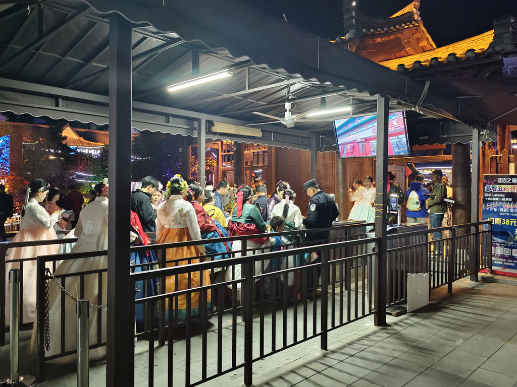 吃完冷面之后,老婆孩子看天色已晚,想要直接去下个目的地,但我坚持,来都来了,一定要逛完,于是出发去延吉的朝鲜民俗园,抵达民俗园的时候已经快黑天了。老婆拍了照片,到延吉总得做一回公主嘛。