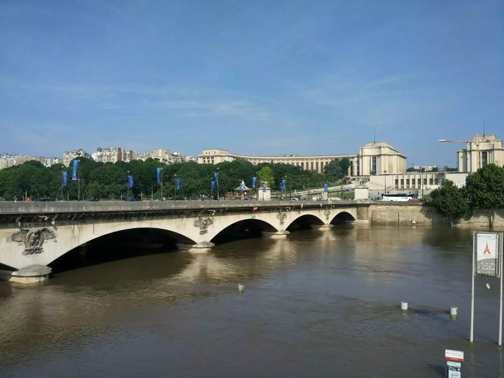 当时,塞纳河的水位涨得很高,来之前看到新闻,巴黎遭遇洪灾,很多地方被淹了。