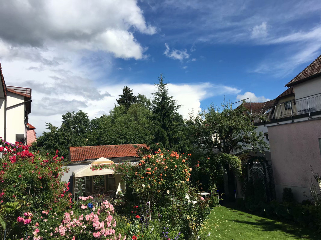 离客户只有2km,但是天气热,不适宜走路,以免浑身出汗,请房东叫了出租车,打车12欧,下来看到一番美丽景象。犹如洗涤过的蓝天,渲染着白云,青山着色,白墙辉映,红顶点缀,加上微风拂面,在欧洲生活的确是惬意。