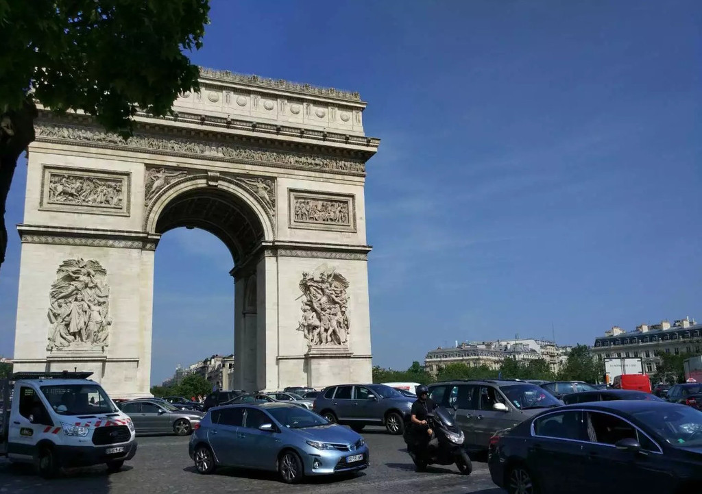 6月初的天气,不是很热,但是紫外线很强。因铁塔在修缮,游客并不是很多,准备穿过铁塔步行去凯旋门。