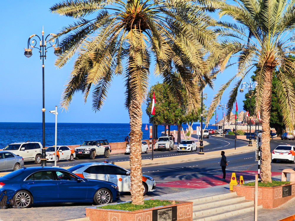 车游马斯喀特市区,人们会看到,市内高大的建筑群整齐地坐落在一片绿树花草丛中,街道上汽车川流不息,现代化的国际机场、广播电视台、宾馆、工厂、学校等,匀称地分布在海湾岸边。城市附近的山坡上,是层层密布的旅游别墅,设计新颖,建筑精细。