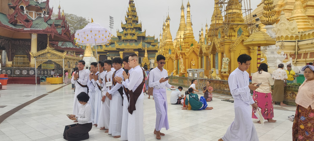 这是第二天一早,拍到的僧侣化缘的景象。这种氛围就“非常东南亚”!就在当天中午,还遇到几批,你没有听错是几批,非常隆重的送小孩去出家的车队、象队。我后来做过视频,专门讲过东南亚国家男子,一生要出家1-3次。这种在中国意识里完全不能理解的经历和生活方式,在缅甸依旧还在延续。当然,如果能把这个事情理解,想透,那么就能回答国内网上热议的话题“中国人为什么这么累?”。这里就不展开了,有兴趣讨论人生、信仰这种话题的,可以私信或加好友,我们慢慢来谈人生理想。哈哈
