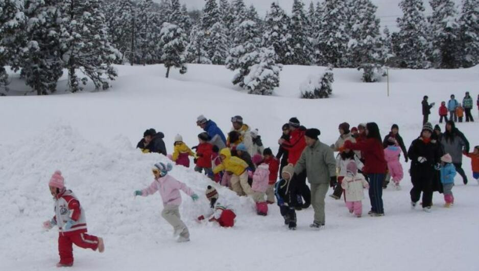 即便初学者和儿童也能放心畅滑的宽阔缓斜坡雪道,没上学的孩子免雪票。