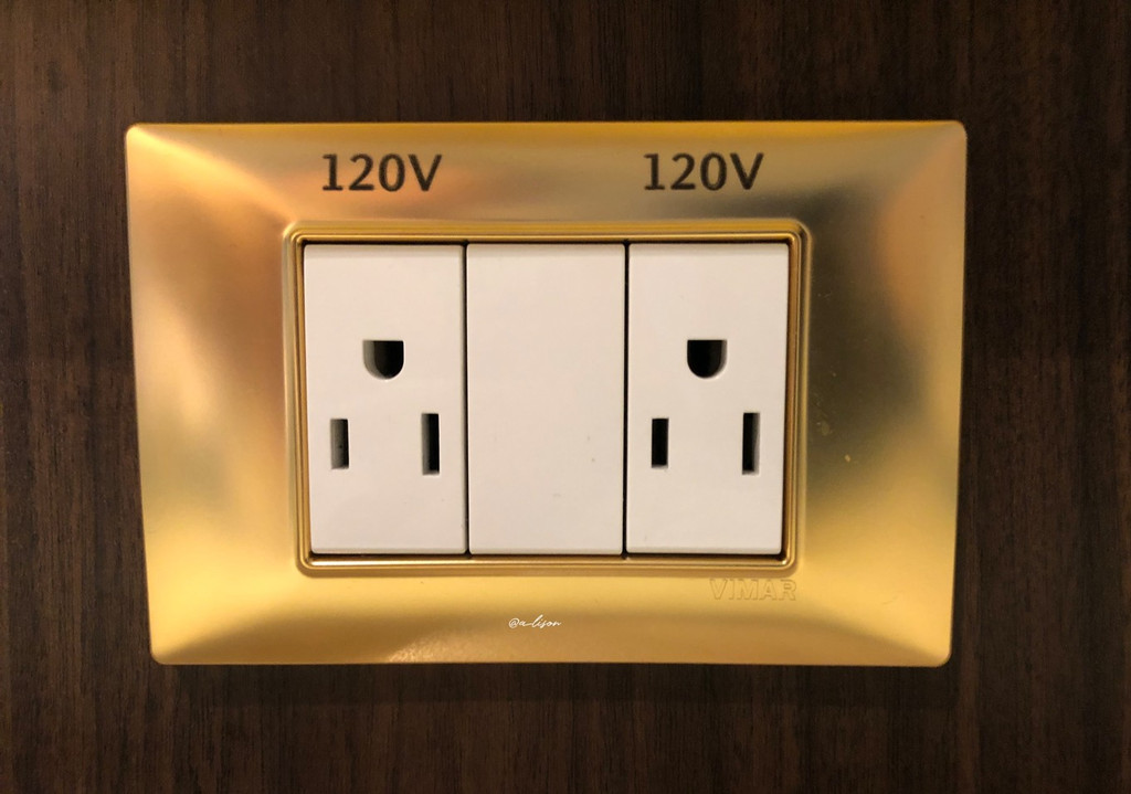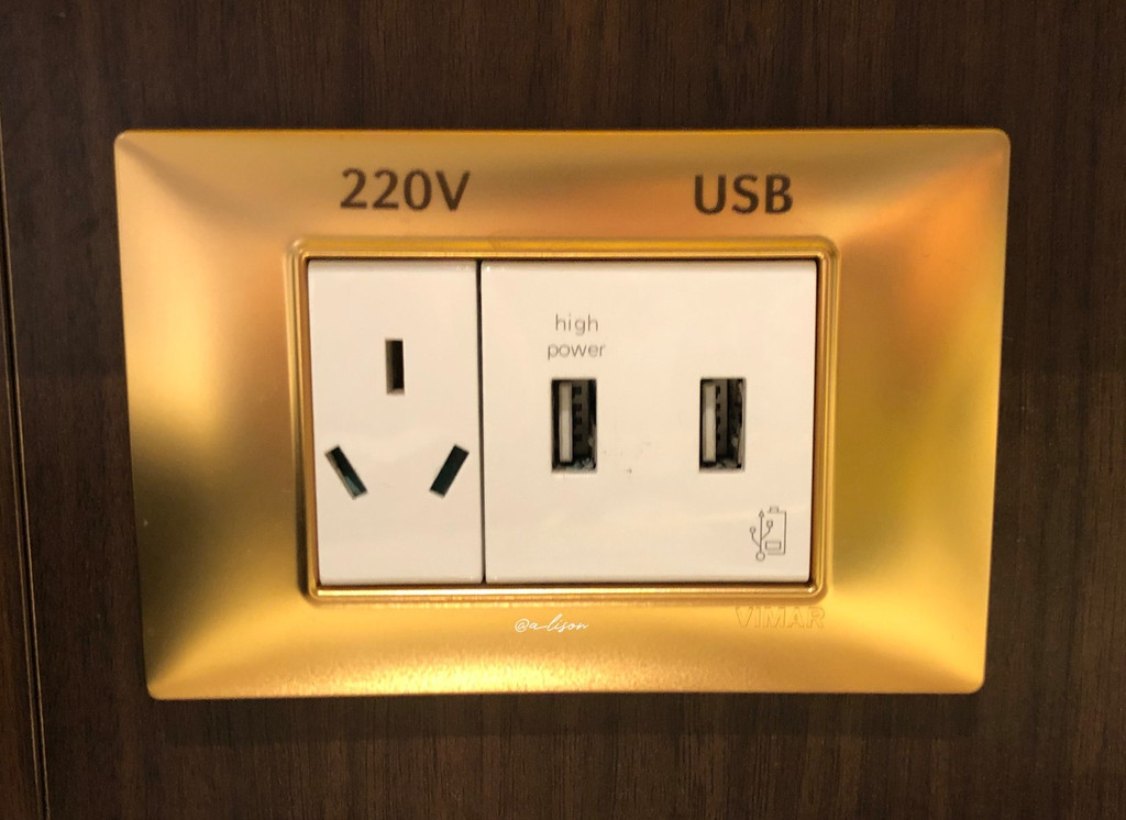 独立卫生间靠近房间门,我们登船到房间第一个事情就是沐浴更衣,热水即开即有舒服得很。洗完澡躺在阳台椅子上吹吹海风、抽烟喝茶聊天吹海风等都不错。房间里有衣柜,里面衣架也很多,衣服什么的很方便悬挂,三个行李箱也完全可以轻易存放。关于房间内插座也是满足日常所需了,桌上是2个120v接口为日系电器所用,1个220v和2个usb口可以直充电子设备,也可以用转换器1拖多