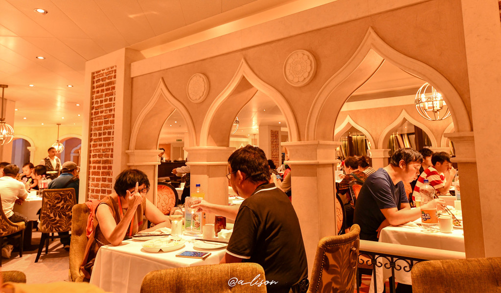 关于3楼和4楼船尾的大运河餐厅要特别提一下,4楼的大运河餐厅是专供mini套房和套房游客的,3楼的大运河餐厅才是普通房间游客使用。也就是如果是非套房的游客需要走过4楼船中区域一直走过假面酒吧之后是4楼大运河,然后从楼梯走下楼就可以到3楼大运河餐厅了。