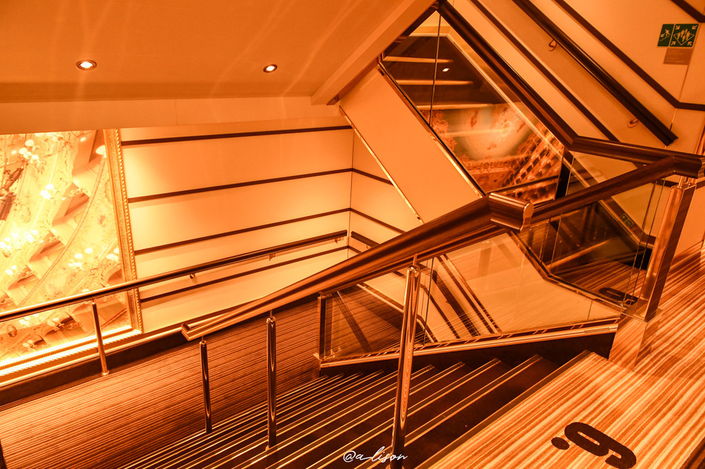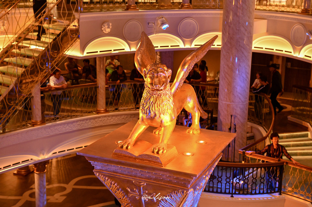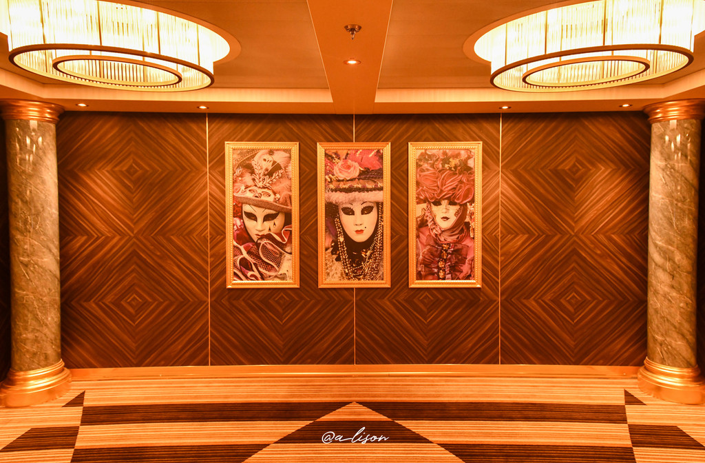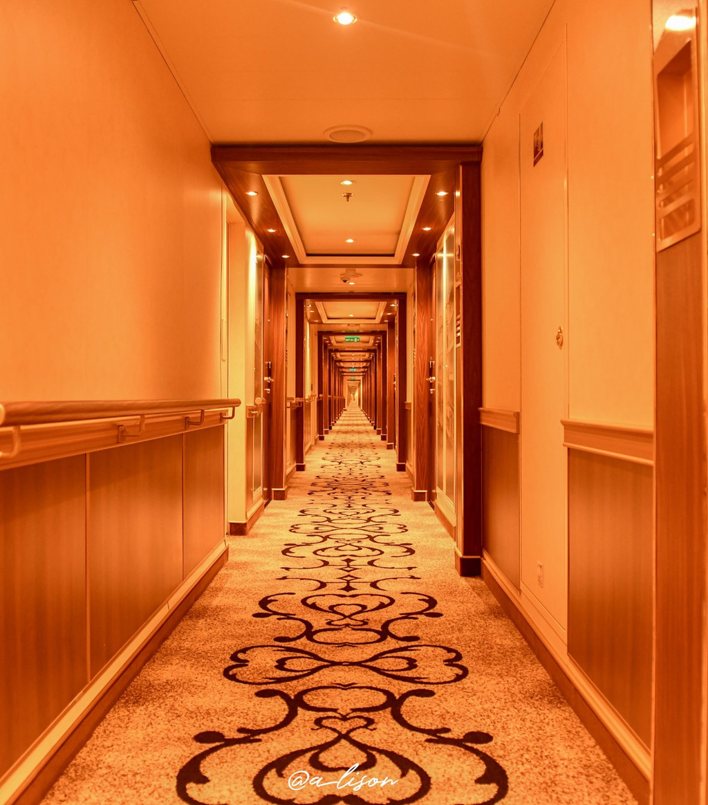 纯正意式血统的邮轮当然哪里都不会缺少意式元素,走廊这里可以看到威尼斯景观的壁画,让人感觉仿佛走在威尼斯街头。