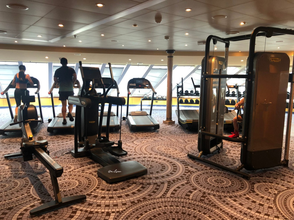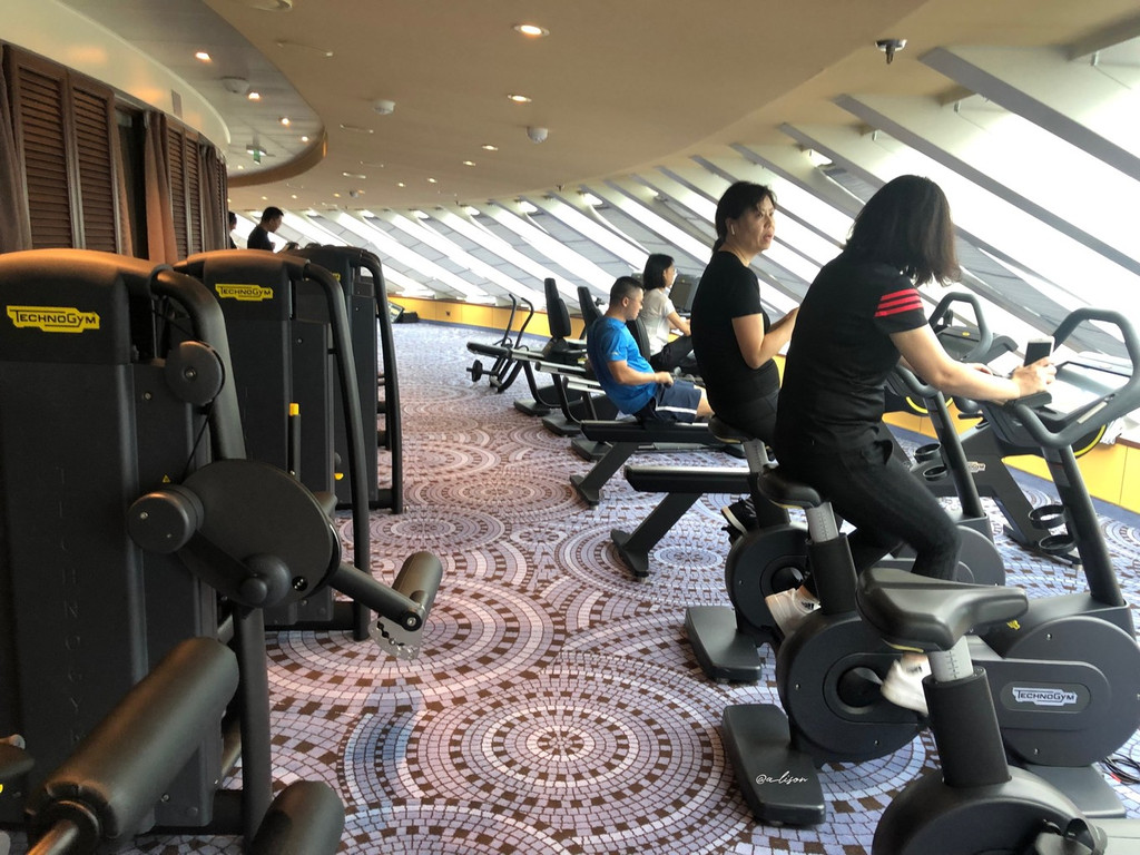 如果不想跳舞和蹦迪,那戴上耳机安安静静待在健身房里也不错。健身中心位于12楼船头位置,设备比较全,而且几天航行时间里感觉健身房里并没有很多人,上器械不需要排队