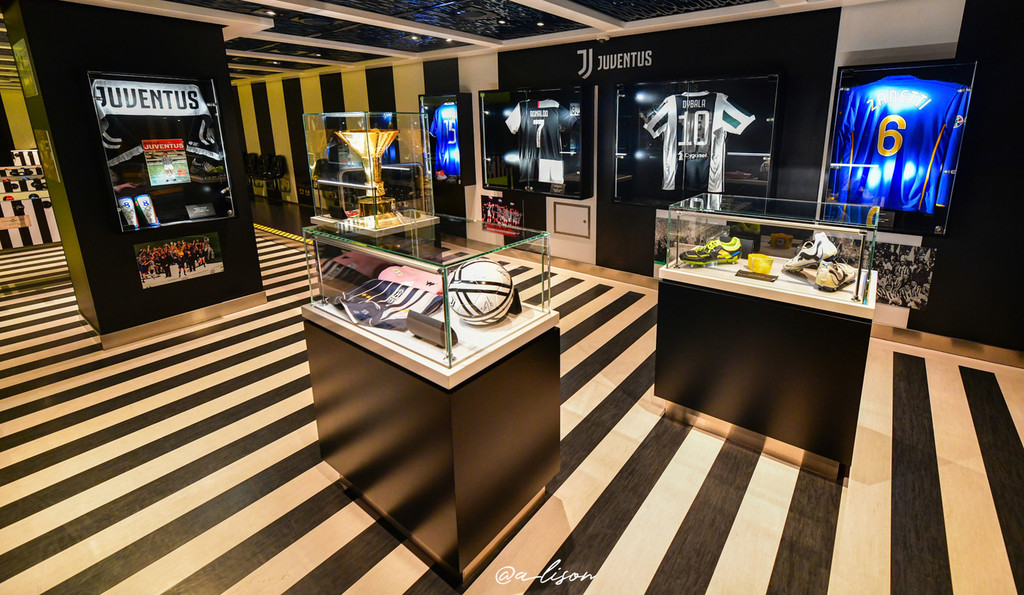 除了球场,这里还有青少年活动中心、尤文图斯博物馆和尤文图斯纪念品商店。尤文图斯商店在4楼船中位置,可惜我在商店逛一圈并没有找到想要买的球衣