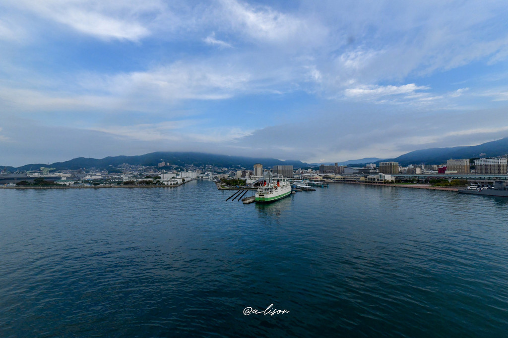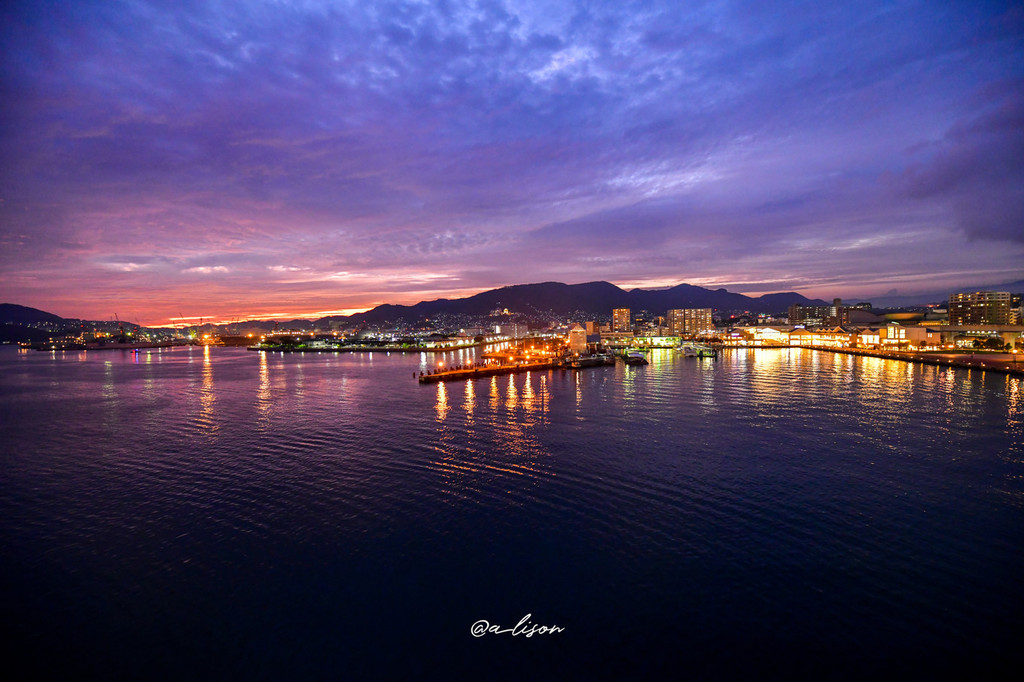 下船前我站在房间阳台眺望佐世保港口,当时的天还是蓝色的,仿佛还能有太阳出现