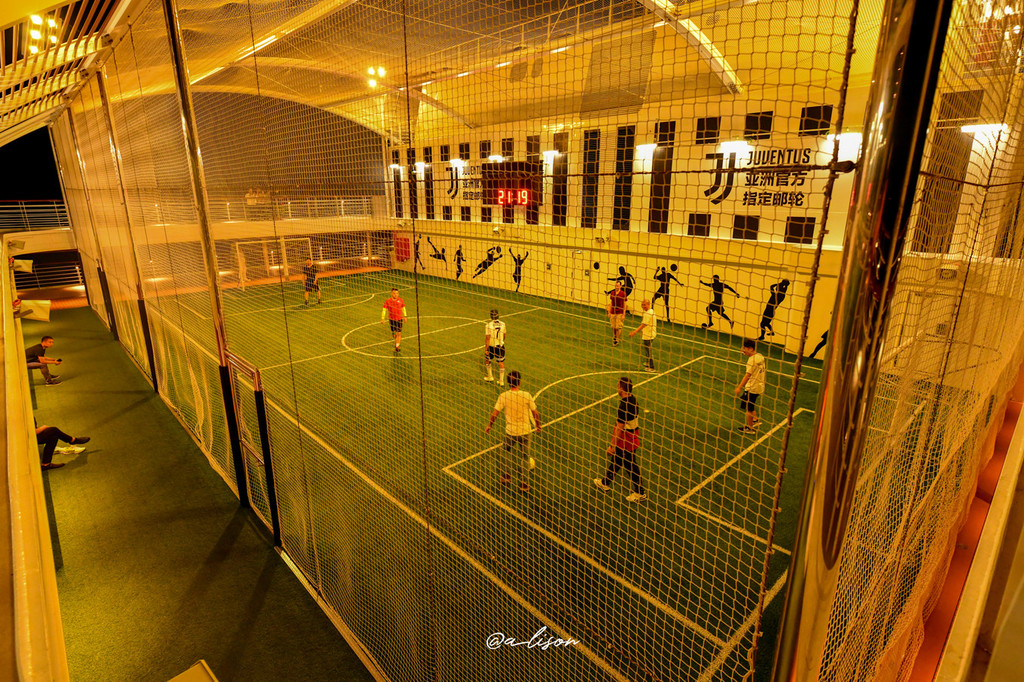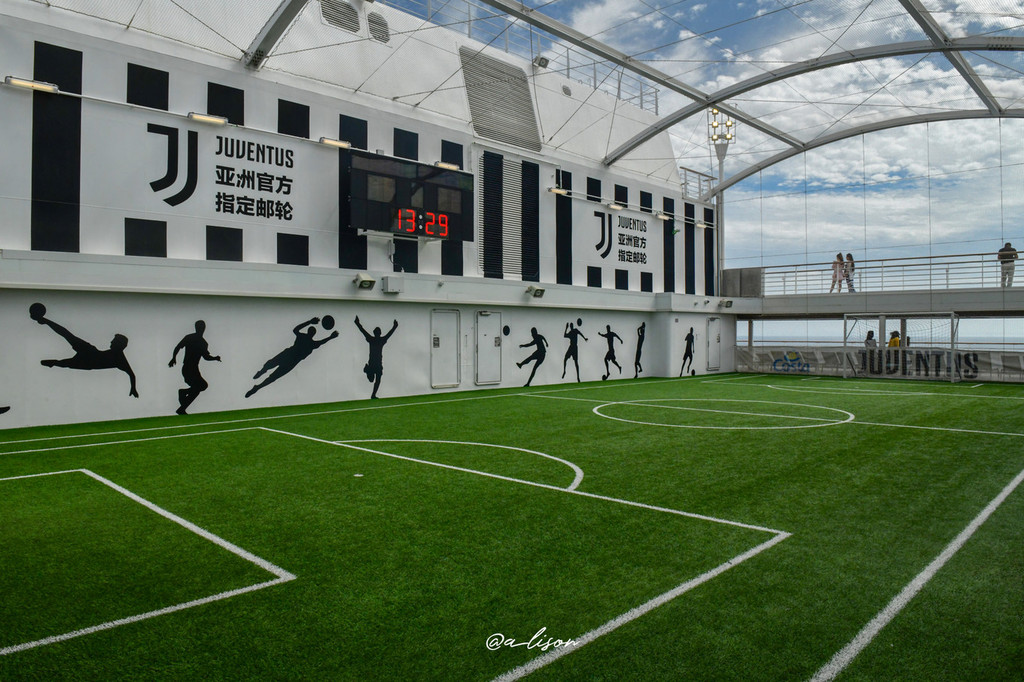 船上的游乐设施是每个游客最期待的,首先隆重登场的是足球迷尤其是尤文图斯足球迷的最爱,在这里不管白天还是晚上,不管有没有非常专业的装备,只要你想都可以进去试试身手跑一跑动一动