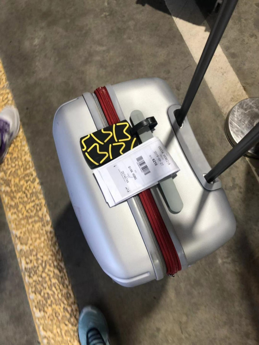 为了方便过安检,我们先把手上的行李箱托运,在收到打印的船票后将最后一页折叠好挂在行李箱把手上,然后走行李托运处给到工作人员托运即可