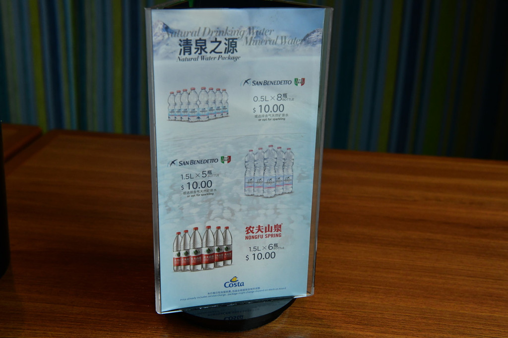 船上免费餐厅:3楼船中的马可波罗餐厅、3楼和4楼船尾的大运河餐厅以及10楼的丽都市集自助餐厅。