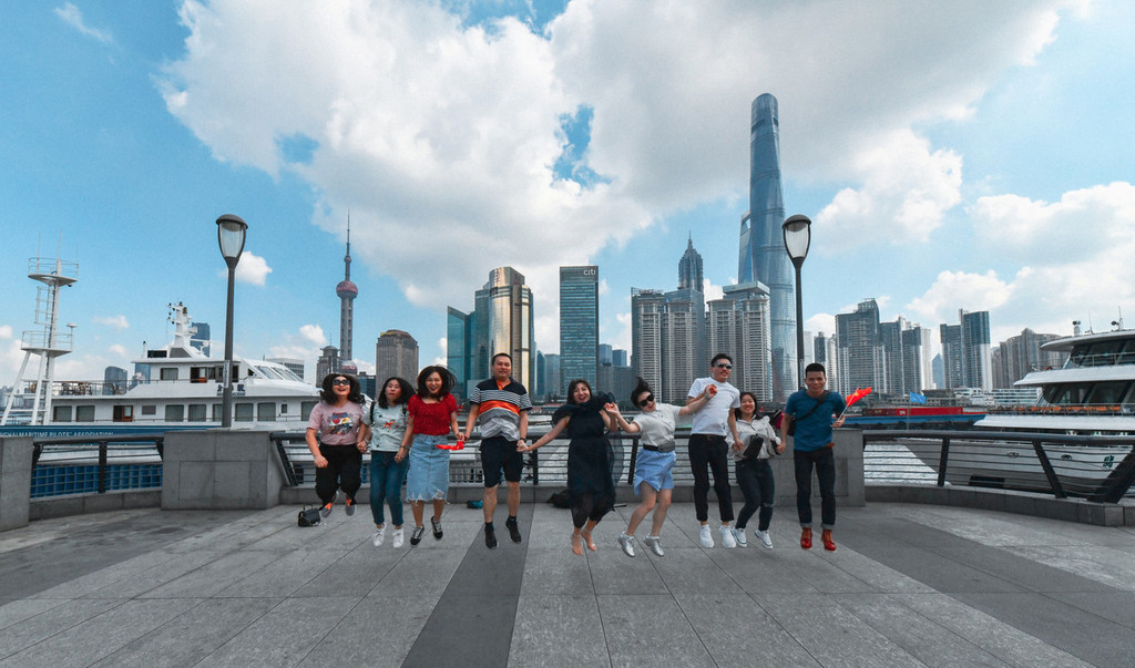 吃完早饭一群人走到附近外滩边拍照,有点疯