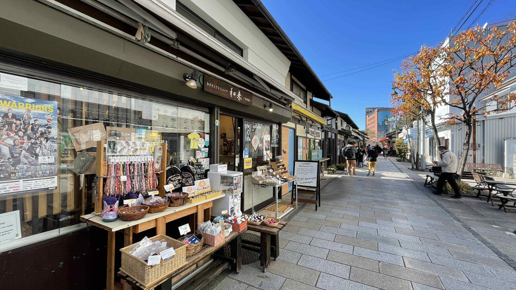 松本城下的绳手街是松本著名的商店街,由于位于松本城护城河旁边,这是一条商店街,独特商店像长屋一样一字排开。从女鸟羽川河岸开始的街道,因“像绳子一样的长堤”而被称为“绳手”。这里有很多关于青蛙的商店、手信、工艺品、雕塑等,甚至还有个青蛙神社,非常可爱。