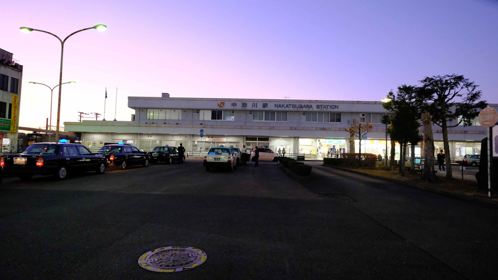 抵达中津川站时,天空已经呈现了梦幻般的粉紫色,车站前面的观光咨询处有地区特产的售卖区,很快就吸引了大家的注意力。古朴的传统点心和小瓶的日本酒最受欢迎,也方便旅途携带。该地区自古以来就盛行木工,这里也有精致的手作木工制品出售,很有地方特色。