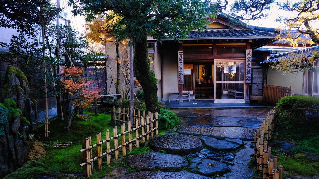 这里被美国专业庭园杂志排名为日本庭院第3名,排在前面的是岛根县的足立美术馆和京都的桂离宫,是来金泽必打卡之地。这里的建筑反应出当时加贺藩的严重正式建筑风格,非常精致小巧。檐廊边有流水环绕,溪水向深处流去形成一个静谧、幽深的空间。此外,庭院中还种有达400年“高寿”的杨梅树,并设有各种奇石怪岩,给人一种莫名的熟悉感与亲近感,很多明星都来这里拍摄海报。