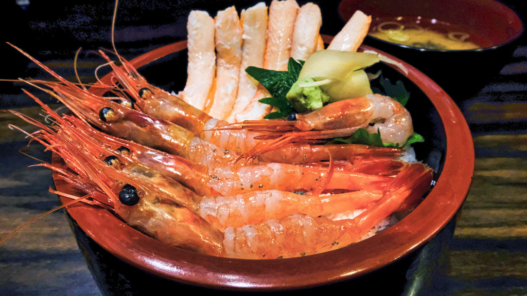 逛了一圈下来,发现这里真的太适合国人来逛吃了吧!在众多现做现吃的海鲜餐厅里,我们选了一对老夫妇经营的海鲜盖饭店,人气颇高,从开门前就有人开始排队了。使用近江市场的海鲜材料制作的海鲜盖饭,特别鲜美、口感Q弹,令人难忘。