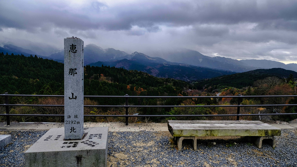 去往松本的路上,我们停在马笼宿顶部的阵场观景台。从这里可以眺望到雄伟群山和和海拔2191m的惠那山。