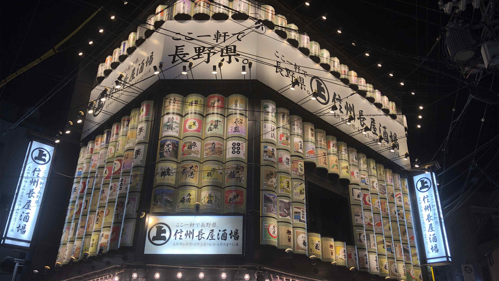 这样的酒场最能治愈一天的旅途疲惫,排成一排的酒桶最是精彩,店铺中央的地炉边,大家围炉而坐,其乐融融。我们点了长野县的名产酱烧,酒的部分有很多长野当地酒,比较推荐大雪溪、佐久乃花。信州是长野以前的称呼,如今在介绍该地区文化时也常使用到这个名字,值得一试。