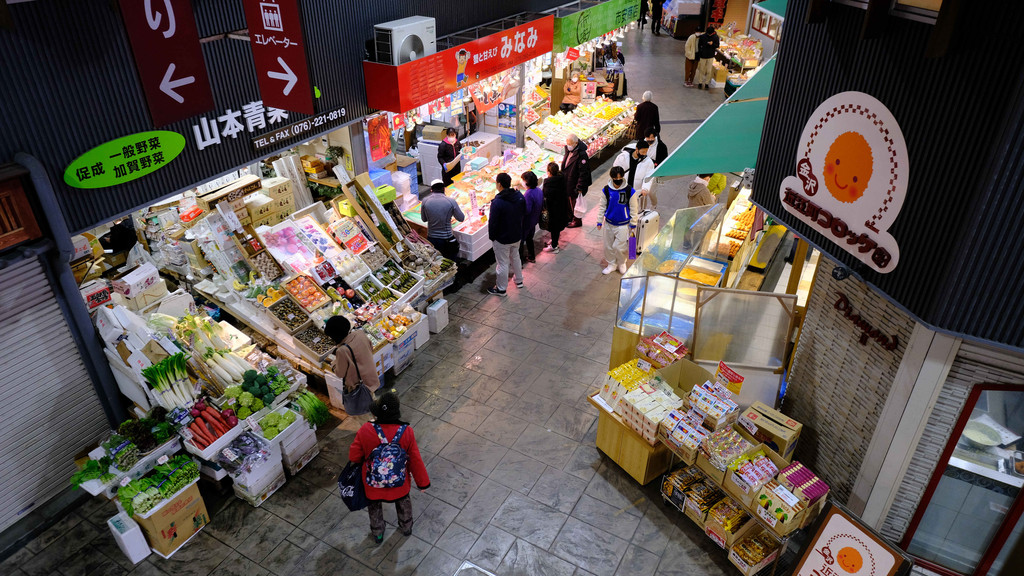 金泽,一个被大海恩惠的城市。近江町市场被誉为“金泽人的厨房”,除了金泽市内的居民以外,周边地区也有不少人会特意来这里购物。这个人气非常旺的市场,是深入金泽的最佳途径。